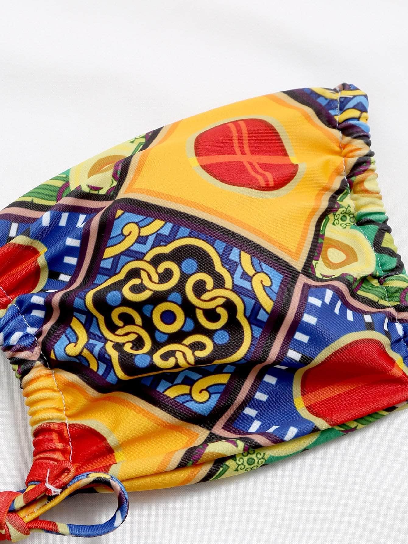 ELTIRE Multicolor Two Piece Bandeau Self Tie Bikini Swimsuit