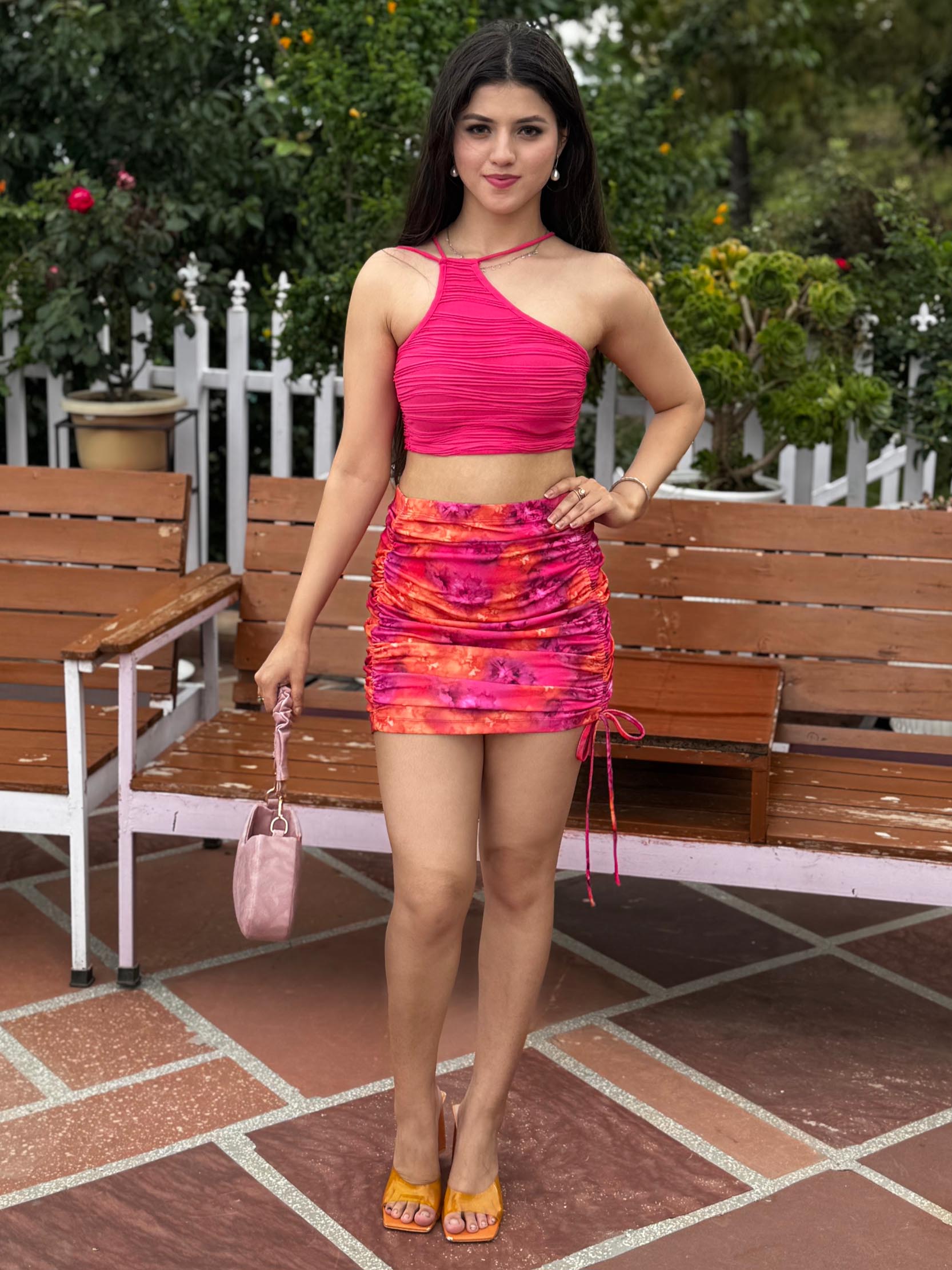 This vibrant skirt features a stunning pink and orange tie-dye print that effortlessly captures the essence of summer. Crafted from lightweight, breathable fabric, it ensures comfort and style for any occasion, whether you're heading to the beach or enjoying a casual day out. The elastic waistband provides a flattering fit, while the flowing silhouette adds a touch of elegance to your wardrobe. Elevate your fashion game with this eye-catching piece that pairs beautifully with a simple top and sandals.