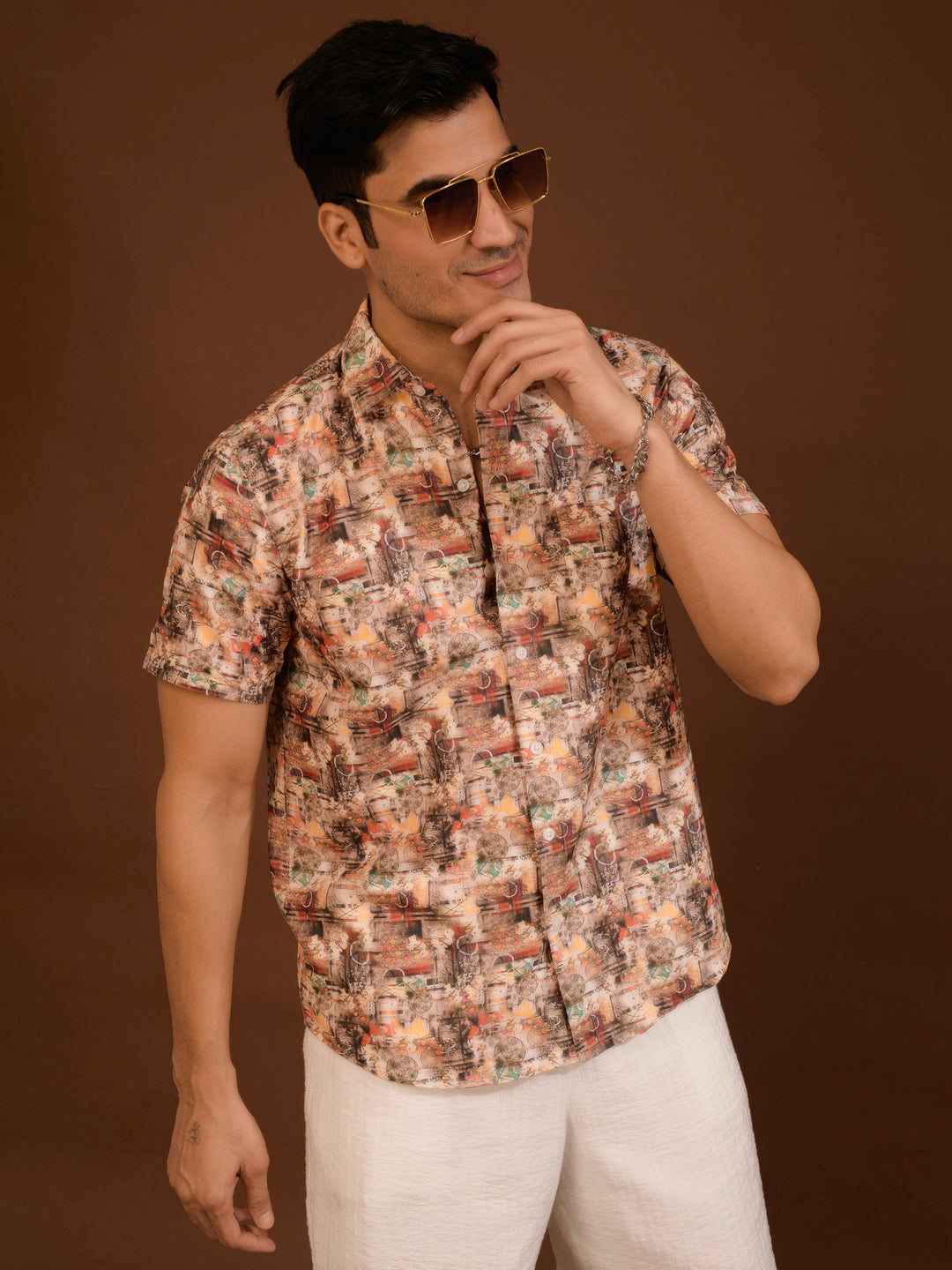 Introducing TANDUL's Men Regular Fit Printed Casual Shirt. Made with high-quality Polycotton fabric, this shirt offers unmatched comfort and style. The vibrant Multicolor print adds an eye-catching touch to your Western Wear wardrobe. With a short sleeve design, this shirt is suitable for any occasion. Experience unbeatable style with TANDUL.
