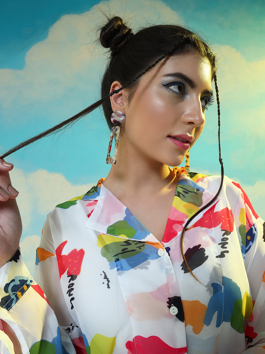 This vibrant and stylish garment features a colorful shirt paired with comfortable shorts, perfect for casual outings or summer adventures. The eye-catching design and lively hues make it an ideal choice for those looking to express their personality while enjoying comfort and ease. Suitable for various occasions, this outfit combines fashion and functionality, ensuring you stand out effortlessly.