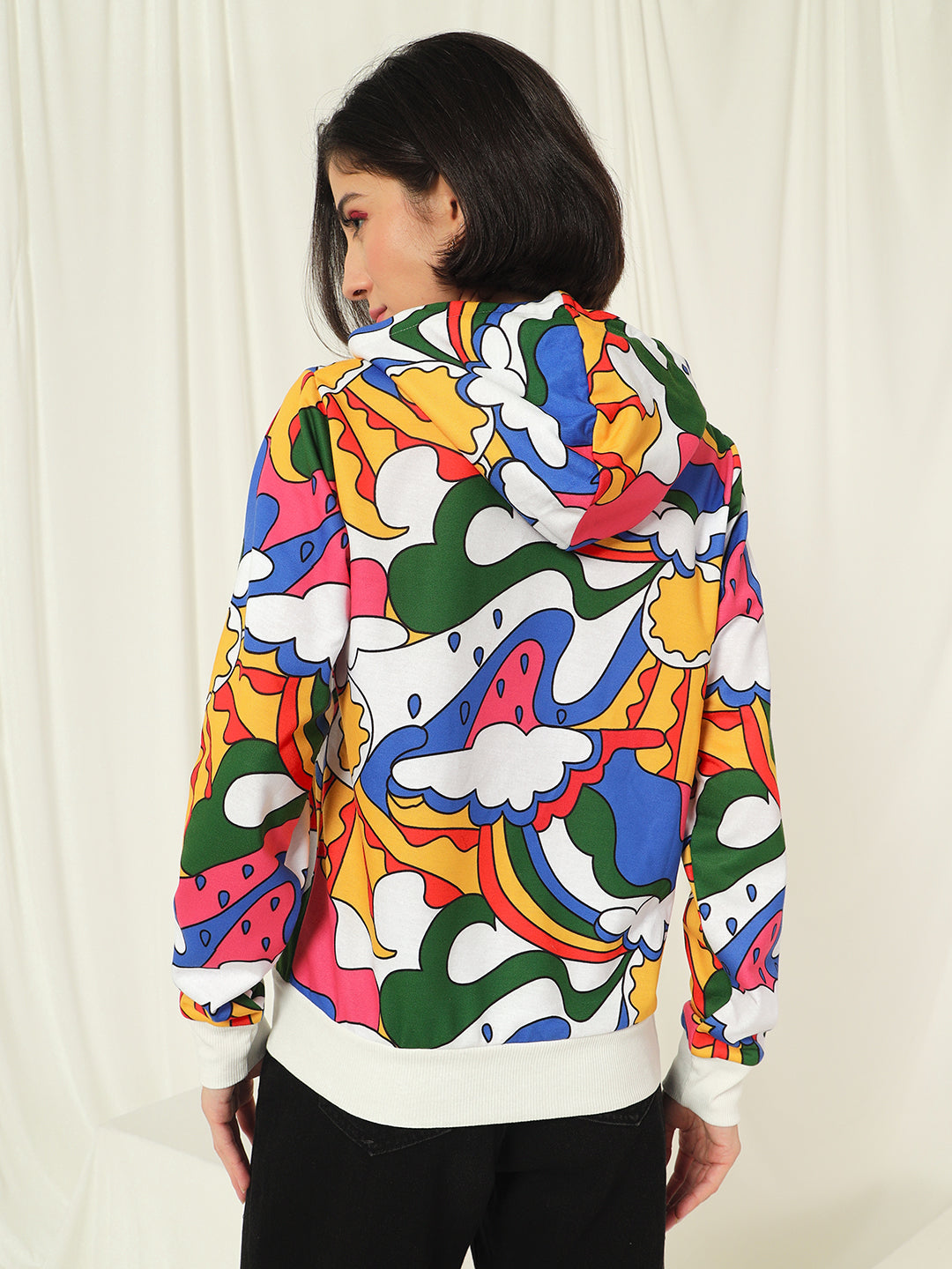 This vibrant sweatshirt features a colorful hoodie that adds a playful touch to any casual outfit. Designed for comfort and style, it pairs perfectly with black pants, making it an ideal choice for both lounging and outings. The soft fabric ensures a cozy fit, while the eye-catching colors make a bold fashion statement. Perfect for those who appreciate a blend of comfort and contemporary style.