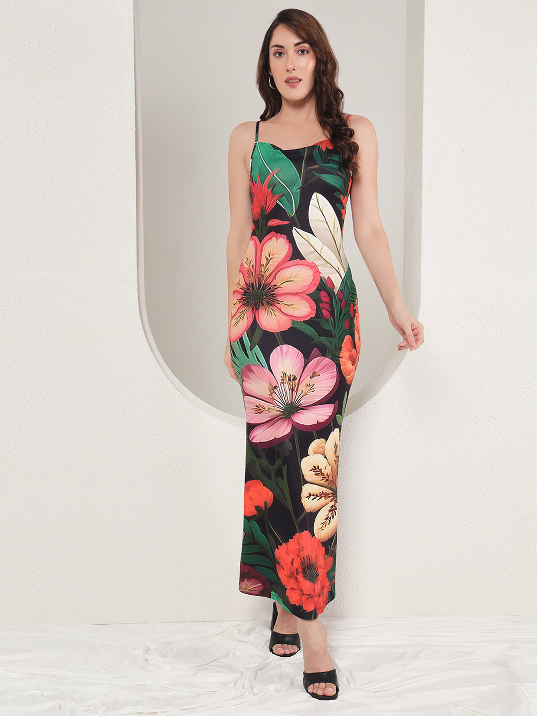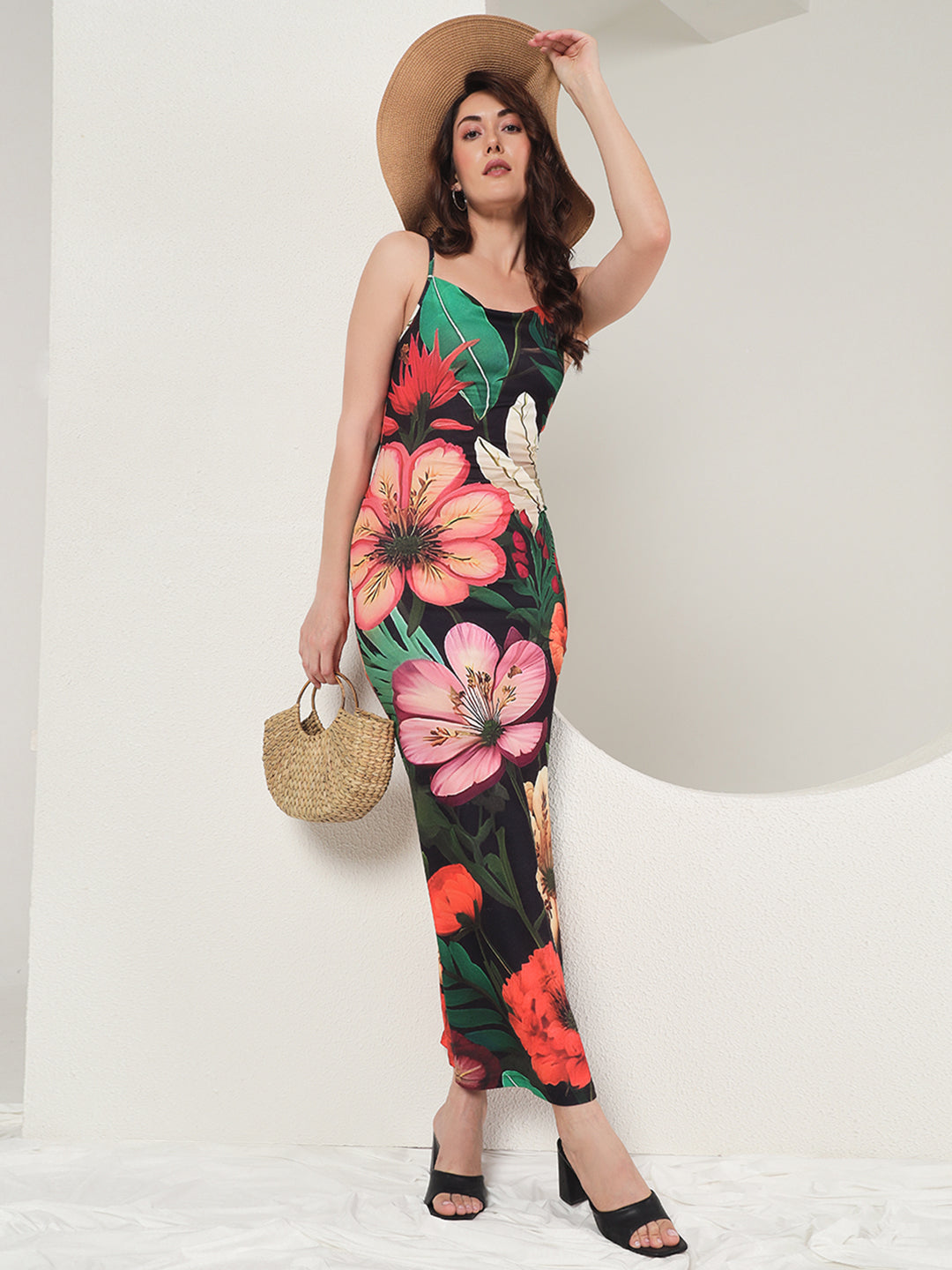 Introduce a touch of floral elegance with TANDUL's Women Bodycon Black Dress. Made from a Lycra Blend, this ankle-length dress features a square neck and sleeveless design, perfect for Western wear. With its figure-hugging bodycon style, this dress is sure to accentuate your curves and make you stand out in any occasion.