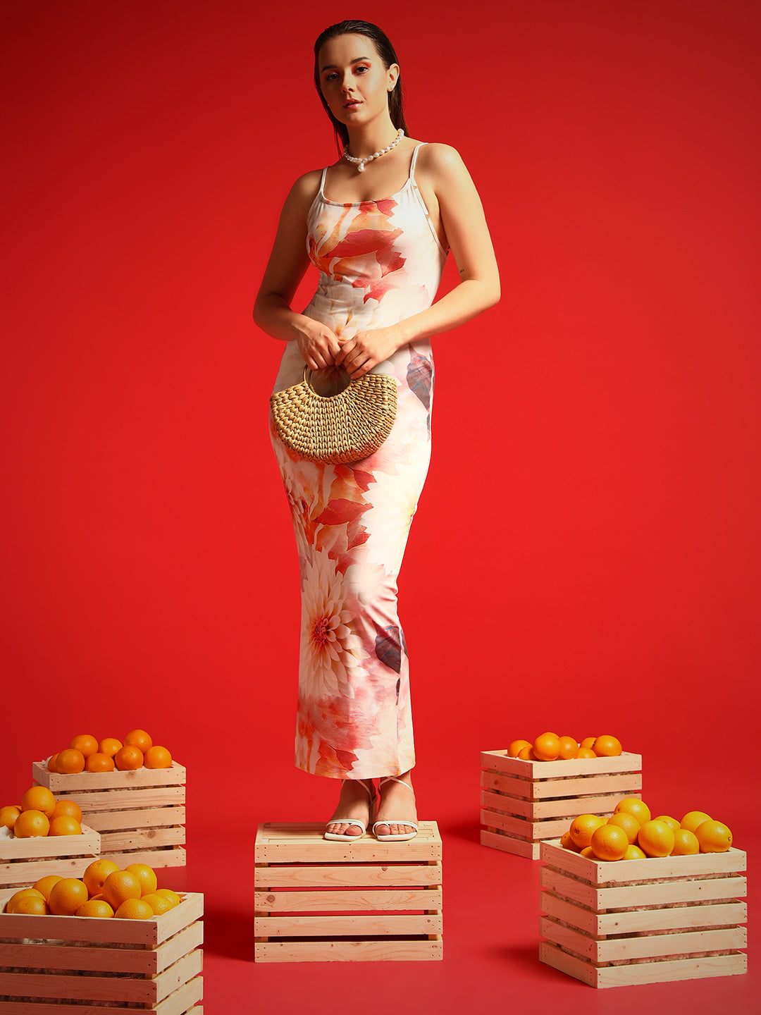 Introducing the TANDUL Women Bodycon Pink Dress, perfect for any occasion. Made with Lycra Blend fabric, this midi/calf length dress features a beautiful floral print and a round neck with shoulder straps for a comfortable fit. Ideal for Western Wear, this dress is easy to wash and leaves you looking stylish and confident.