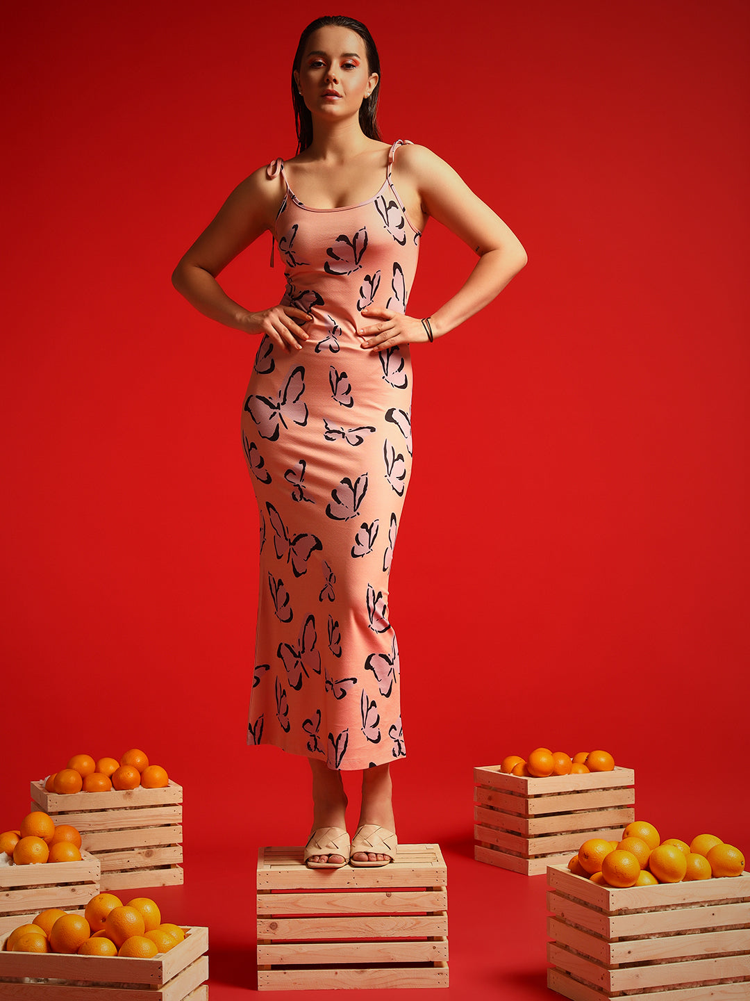 The TANDUL Women Bodycon Pink Dress is made of a comfortable Lycra blend, perfect for all-day wear. Its midi/calf length, sleeveless design with shoulder straps and round neck make it a must-have for any occasion. The vibrant pink color and lively print add a touch of freshness and vitality to your wardrobe. Easy to wash and suitable for Western wear, this dress is perfect for both casual and festive occasions.