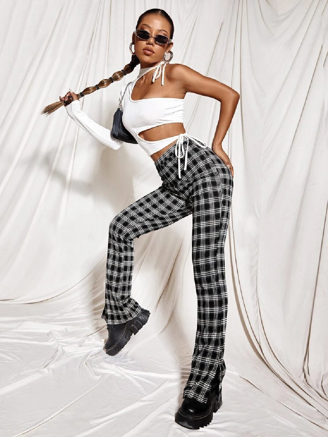 Our stylish black and white checkered pants, designed exclusively for women. The classic checkered pattern adds a touch of sophistication, making them perfect for both casual and formal occasions. Crafted for comfort and versatility, these trousers can be effortlessly paired with a variety of tops, ensuring a chic and polished look.