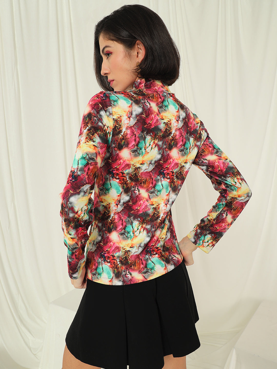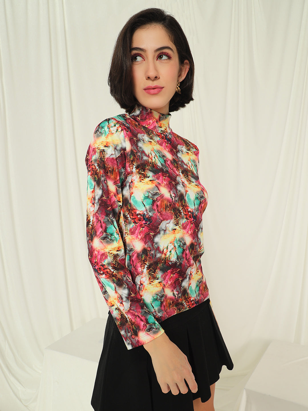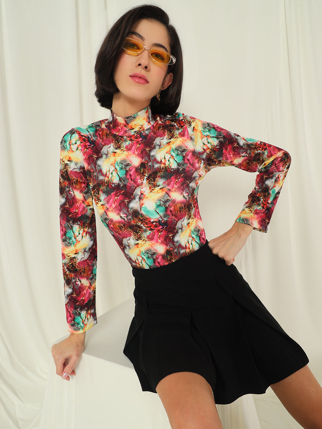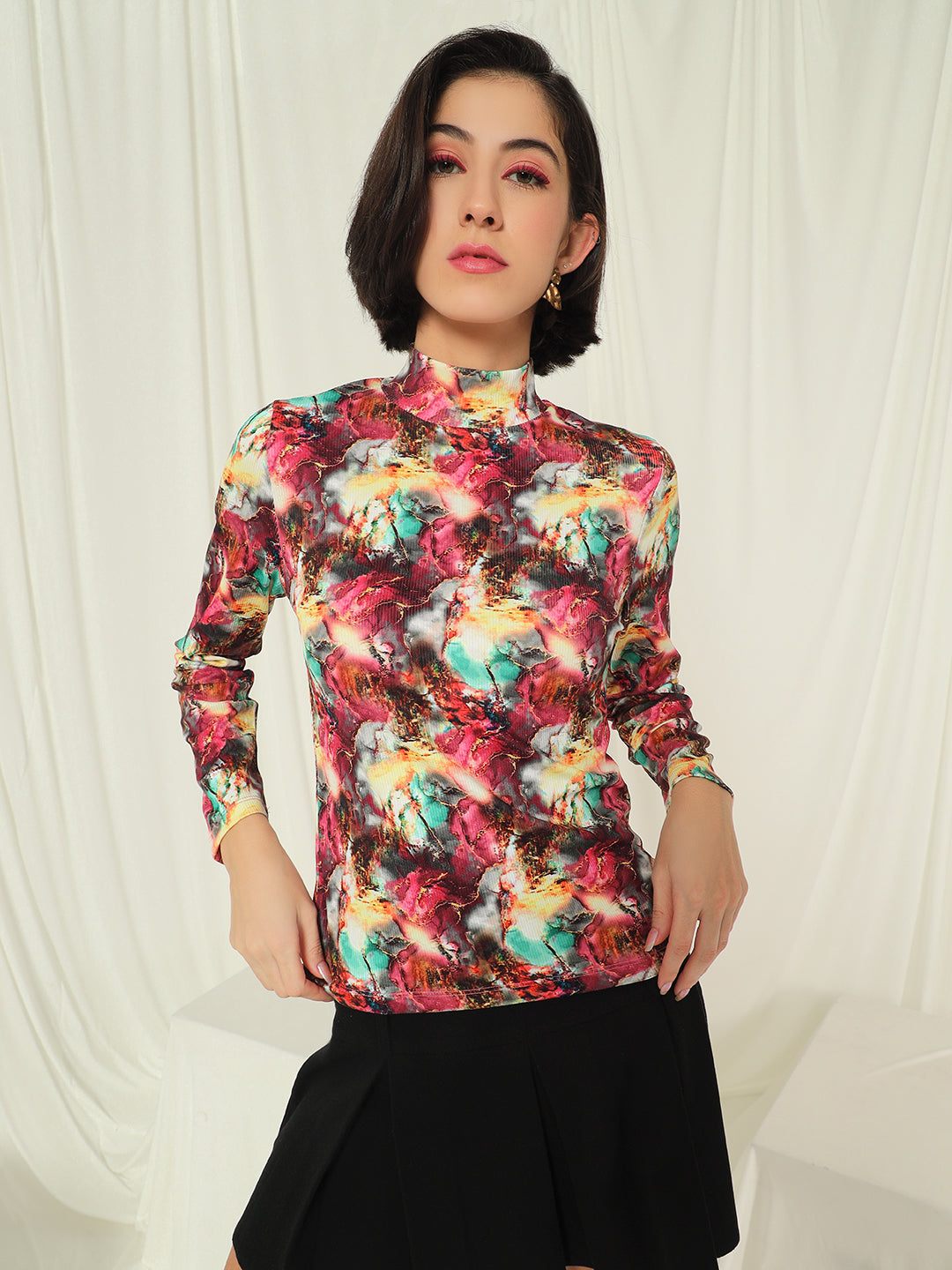 Stay warm and stylish this winter with TANDUL Women Printed High Neck Sweater. Made with cozy fleece fabric, this sweater features a trendy high neck design and a unique printed pattern. Perfect for any occasion, this sweater is suitable for western wear. Easy to care for with regular machine wash. Available in multicolor.