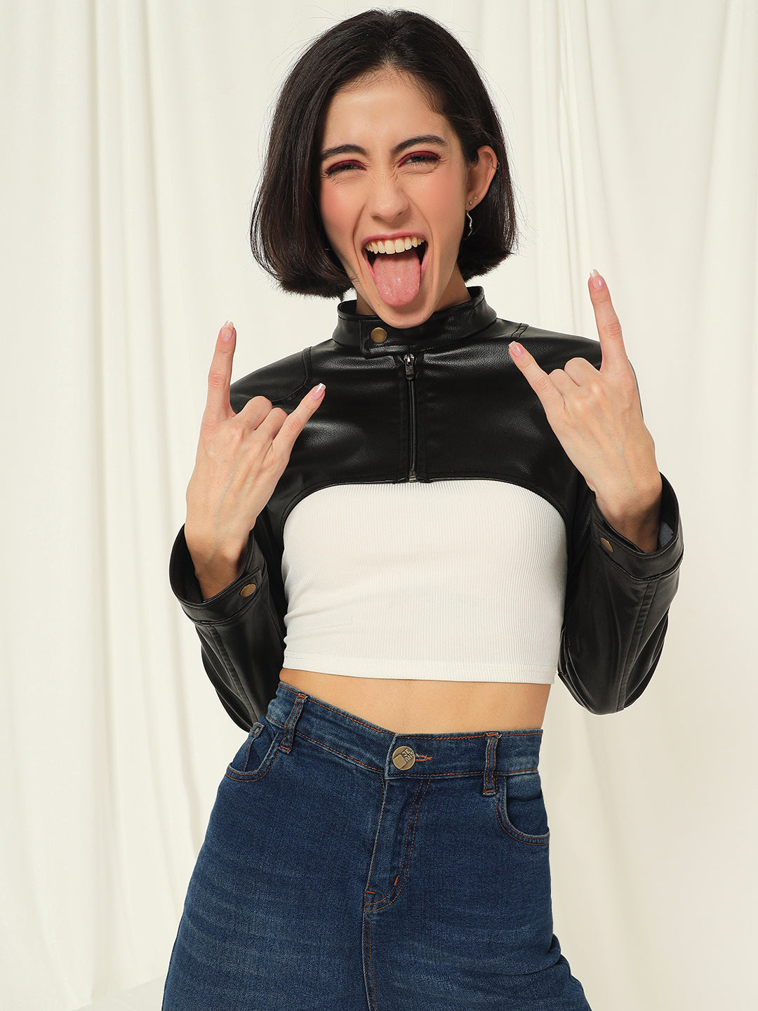 The TANDUL Women Solid Tailored Jacket in black is the perfect addition to your Western wear collection. Made from high-quality faux leather, this jacket features a full sleeve design with a convenient zipper closure. Designed for style and comfort, it's ideal for any occasion. Gentle machine wash ensures easy maintenance.