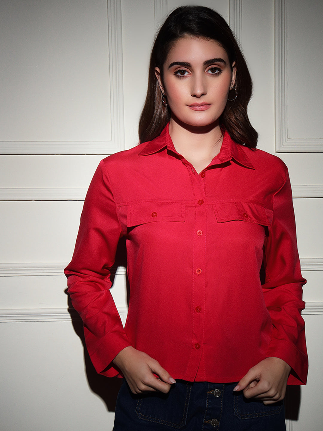 TANDUL Women Regular Fit Solid Spread Collar Casual Shirt