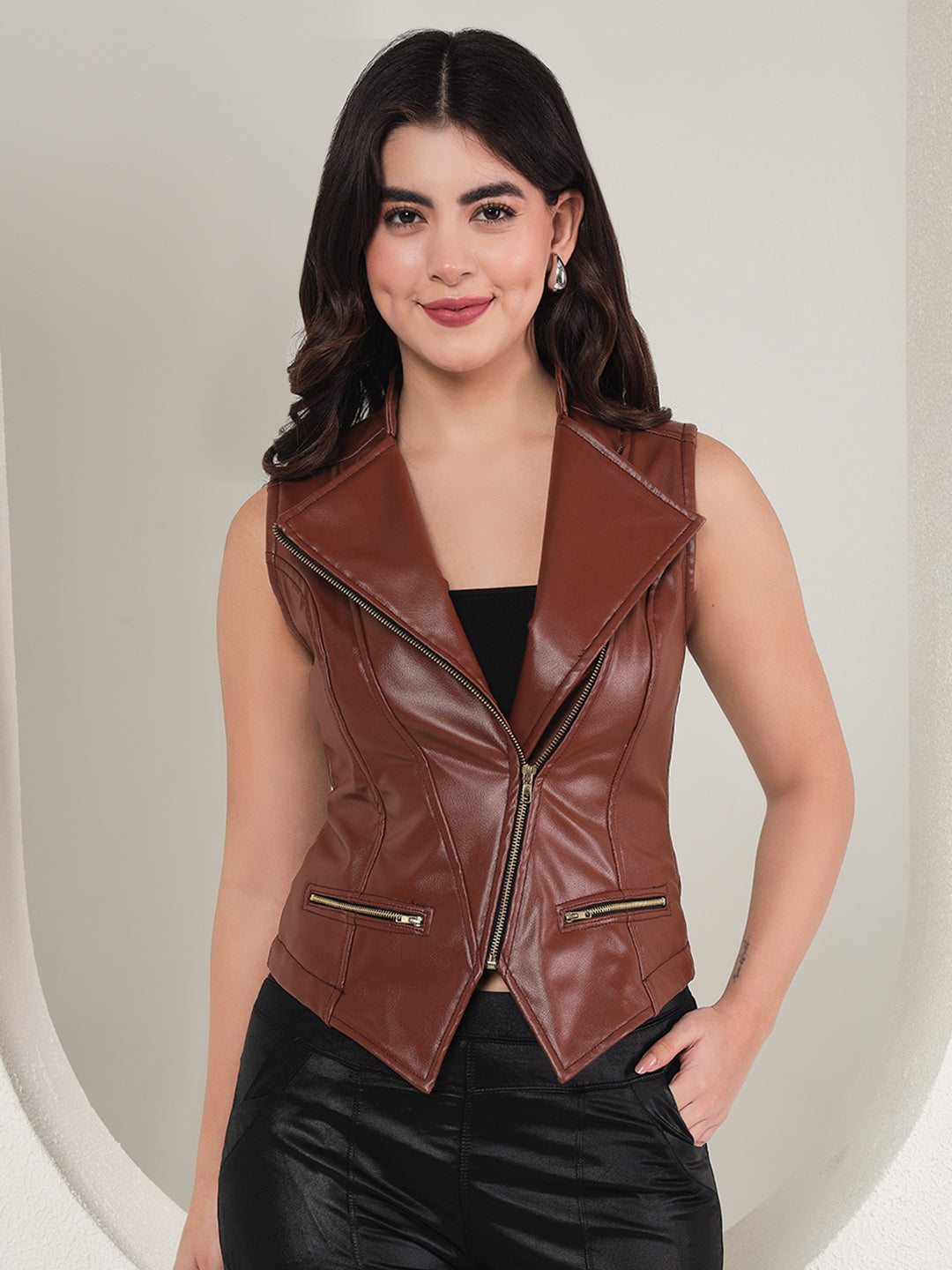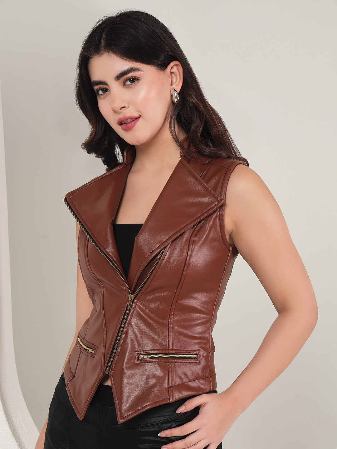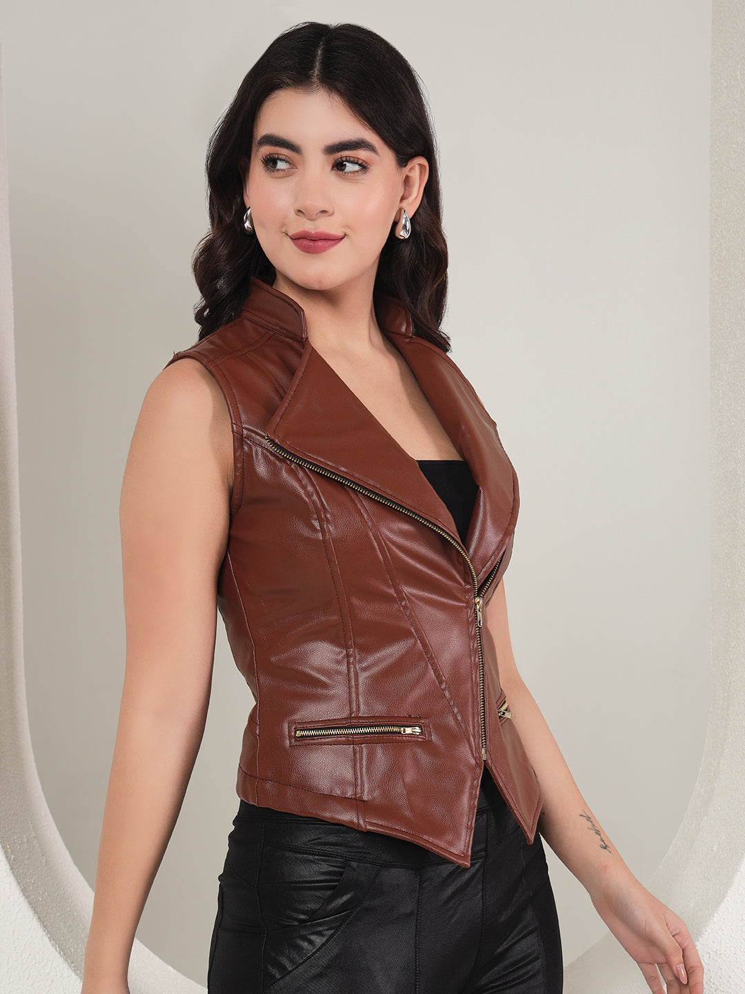 As an industry expert, I recommend the TANDUL Women Solid Biker/Riding Jacket for its stylish and sleek design. Made with faux leather and a lapel collar, this sleeveless jacket features a zipper closure and is ideal for Western Wear. Suitable for gentle machine wash, this jacket adds the perfect edgy touch to any outfit - perfect for the confident, modern woman.
