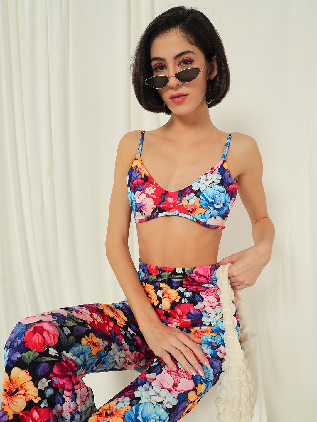 Stay effortlessly stylish with the TANDUL Top Palazzos Co-ords Set. Made with high-quality polyester fabric, this set features a beautiful floral print design on both the top and palazzos. The crop top with spaghetti neck and no sleeves closure is perfect for casual occasions, while the high waist palazzos add a touch of sophistication. Get the perfect fit with the hook closure on the top and back closure on the palazzos. Available in size XL.