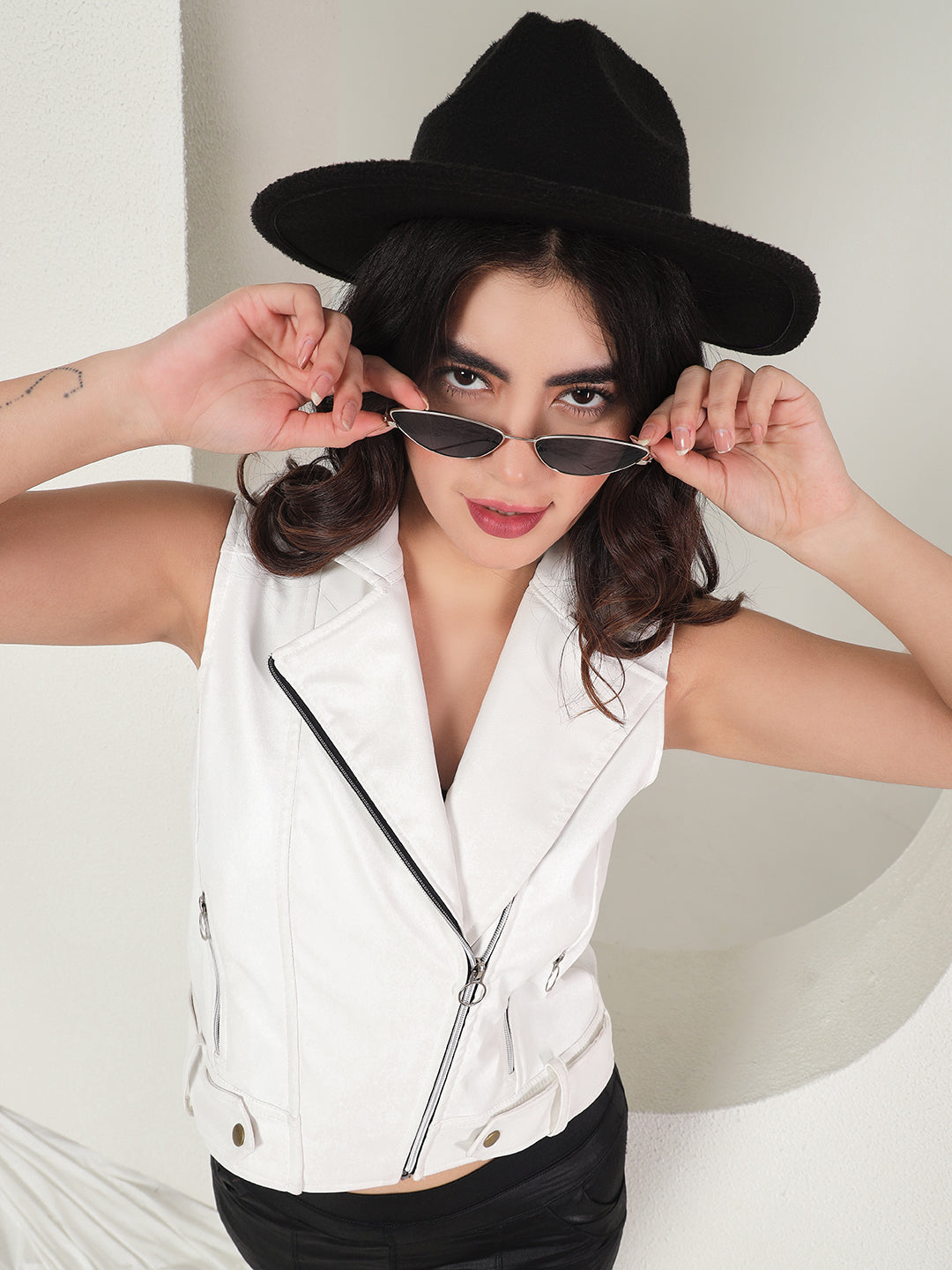Expertly crafted for the modern woman, the TANDUL Women Solid Leather Jacket is the perfect addition to your wardrobe. Made with soft faux leather, this sleeveless jacket features a lapel collar and a convenient zipper closure. Ideal for Western Wear, it's versatile, stylish, and easy to care for with gentle machine wash.