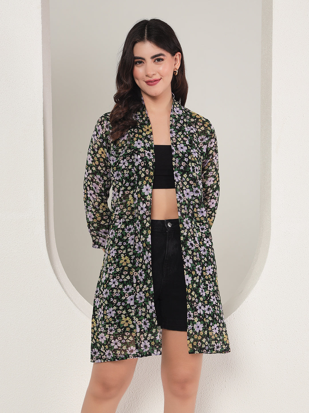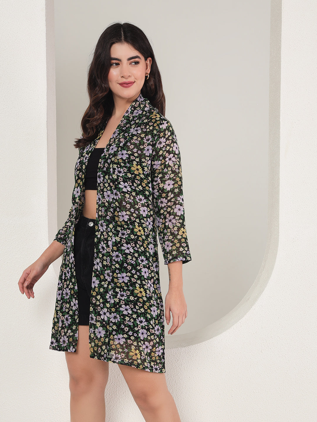 This TANDUL black shrug is ideal for casual occasions, made with lightweight georgette fabric for comfort. The floral print adds a touch of elegance to the straight cut design and 3/4th sleeves. With no closure, it offers effortless style and comes in a convenient pack of 1.