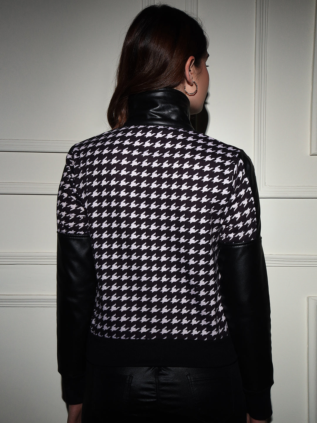Experience warmth and style in our TANDUL Women's Houndstooth Fleece Jacket. Made with cozy fleece fabric and featuring a trendy houndstooth pattern, this full-sleeve jacket is perfect for any chilly day. The mandarin collar and zipper closure add a touch of sophistication. Ideal for western wear and gentle machine washable.