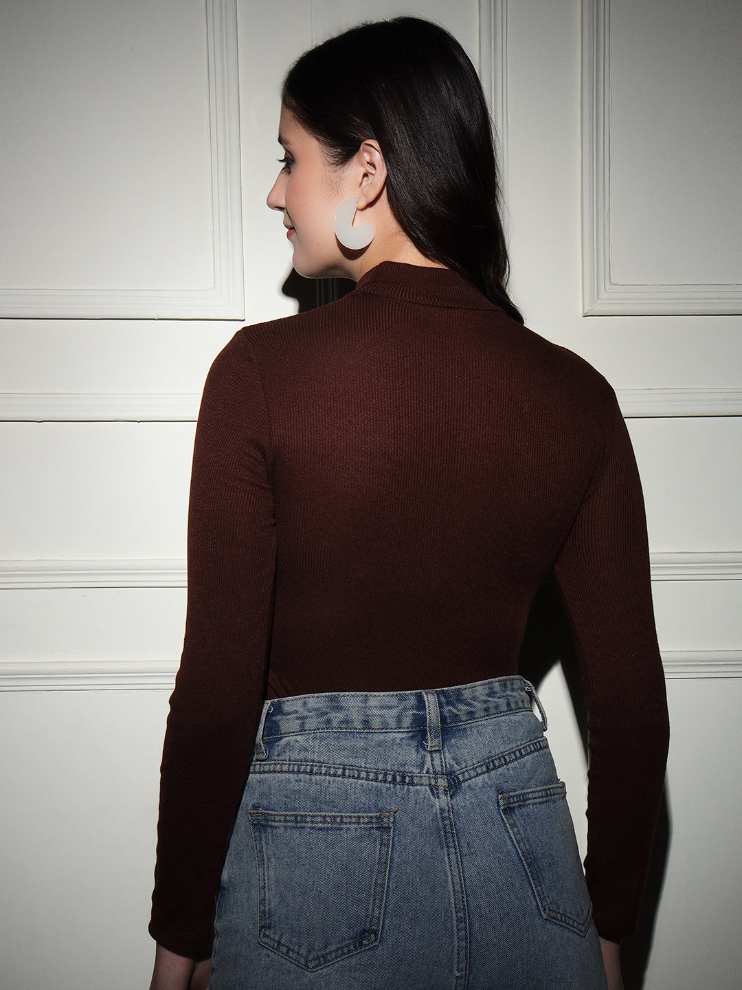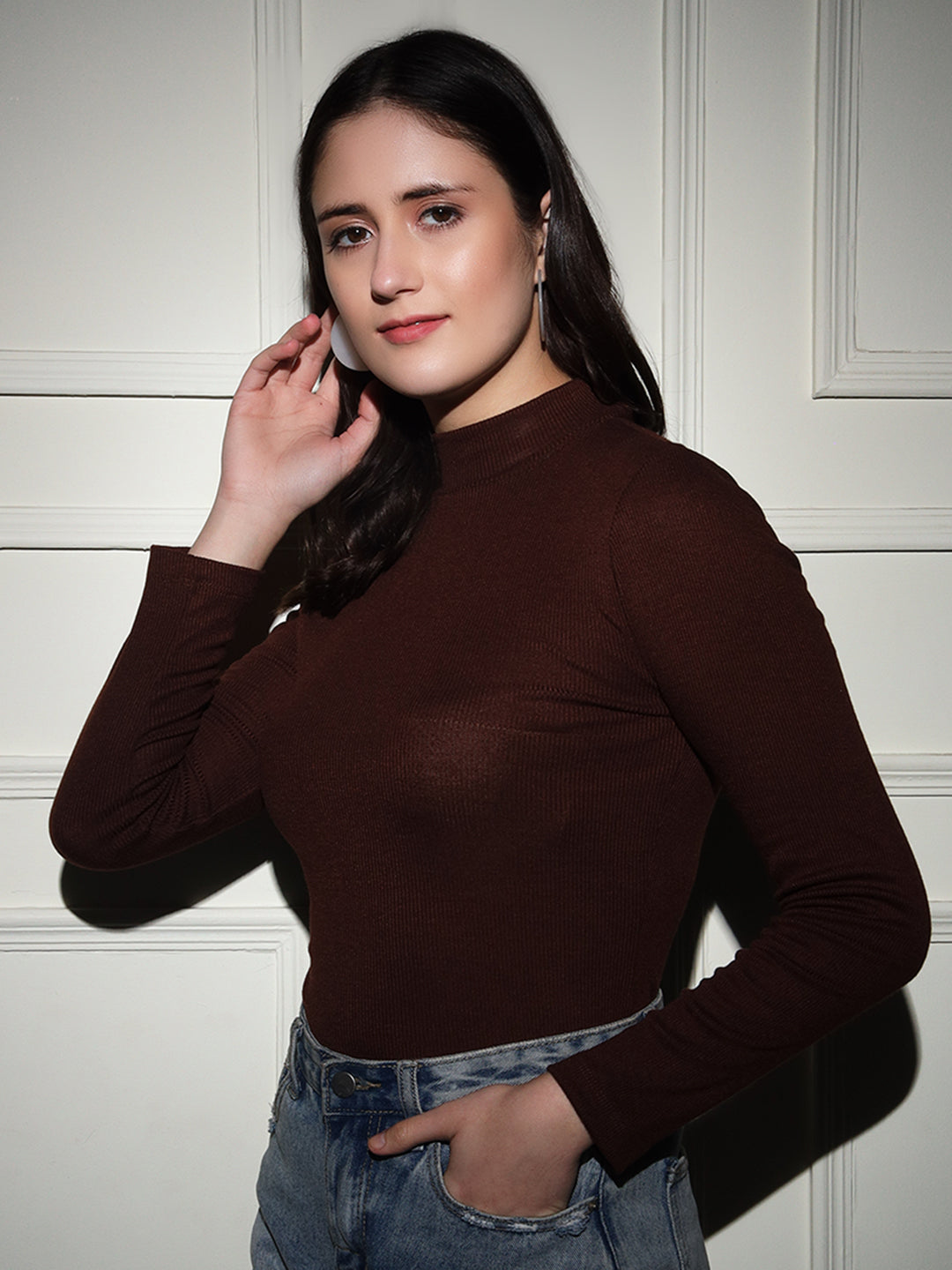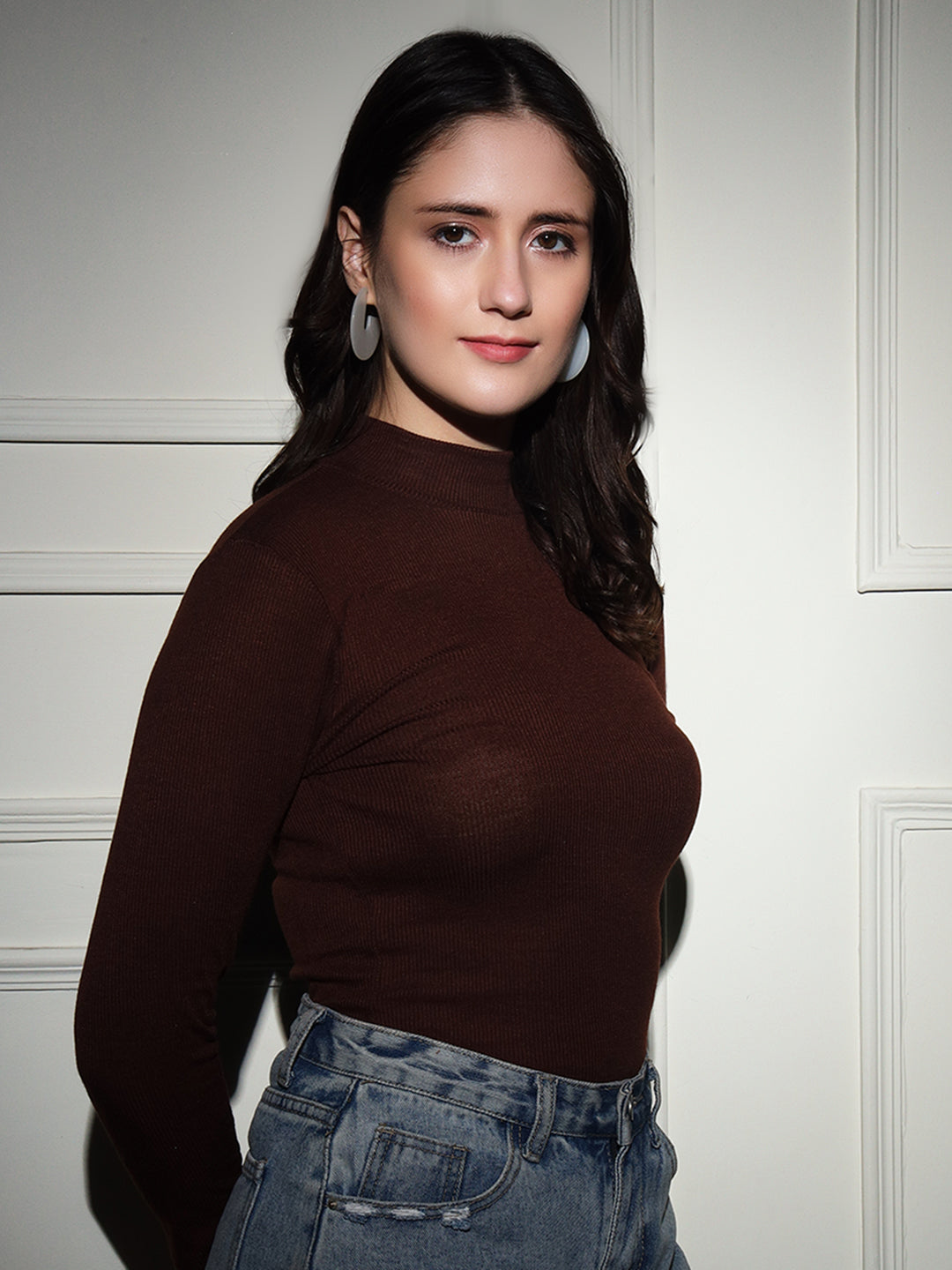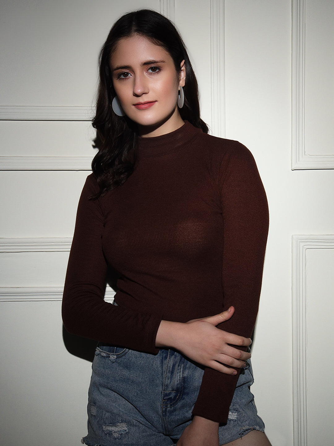 The TANDUL Women Solid High Neck Brown Sweater boasts a stylish and versatile addition to any wardrobe. Made with a soft and durable polyester blend, this sweater features a high neck and full sleeves for added warmth and comfort. With no closure and a gentle machine wash fabric care, it's perfect for modern Western wear.