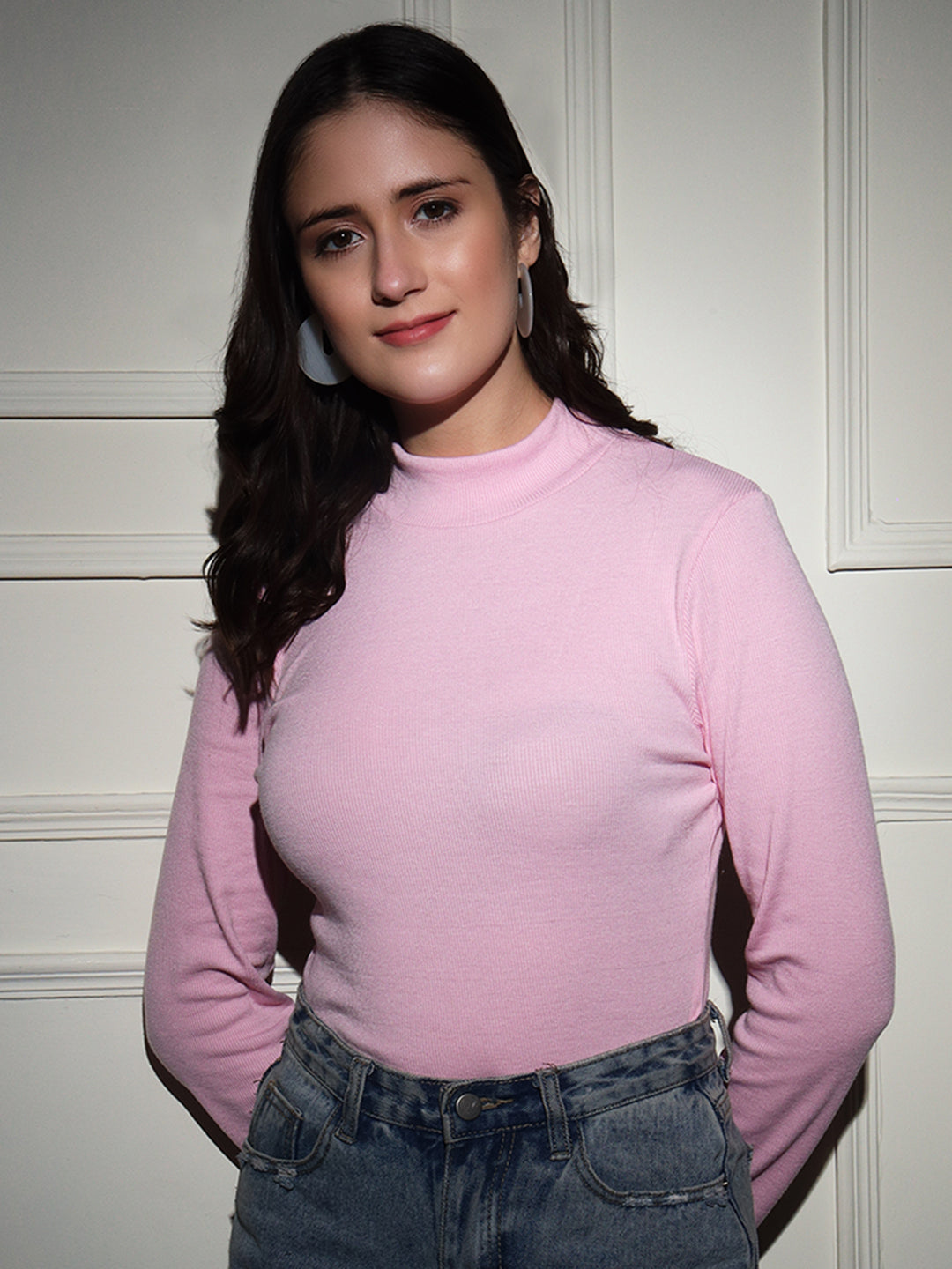 Elevate your winter wardrobe with the TANDUL Women Solid High Neck Pink Sweater. Made with a soft polyester blend, this sweater features a high neck and full sleeves for added warmth. Perfect for Western wear, it requires minimal care with gentle machine wash. Stay cozy and stylish with this must-have addition to your closet.