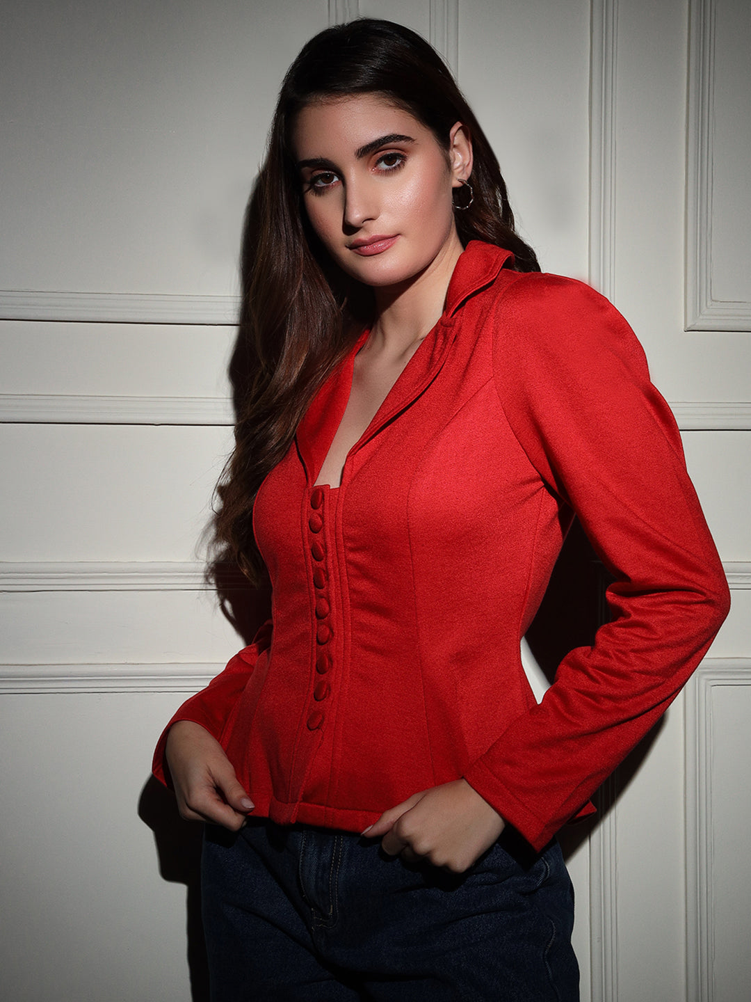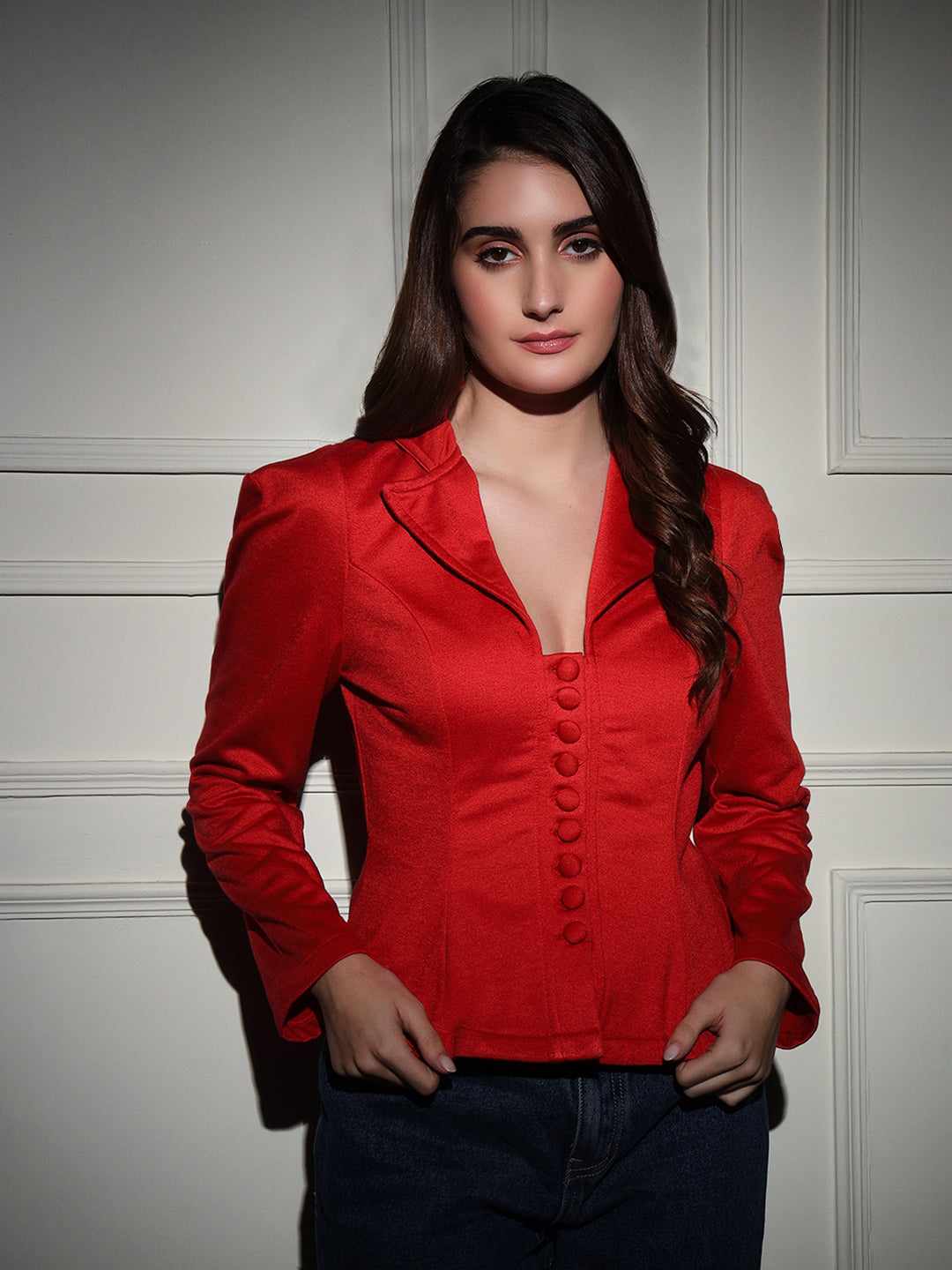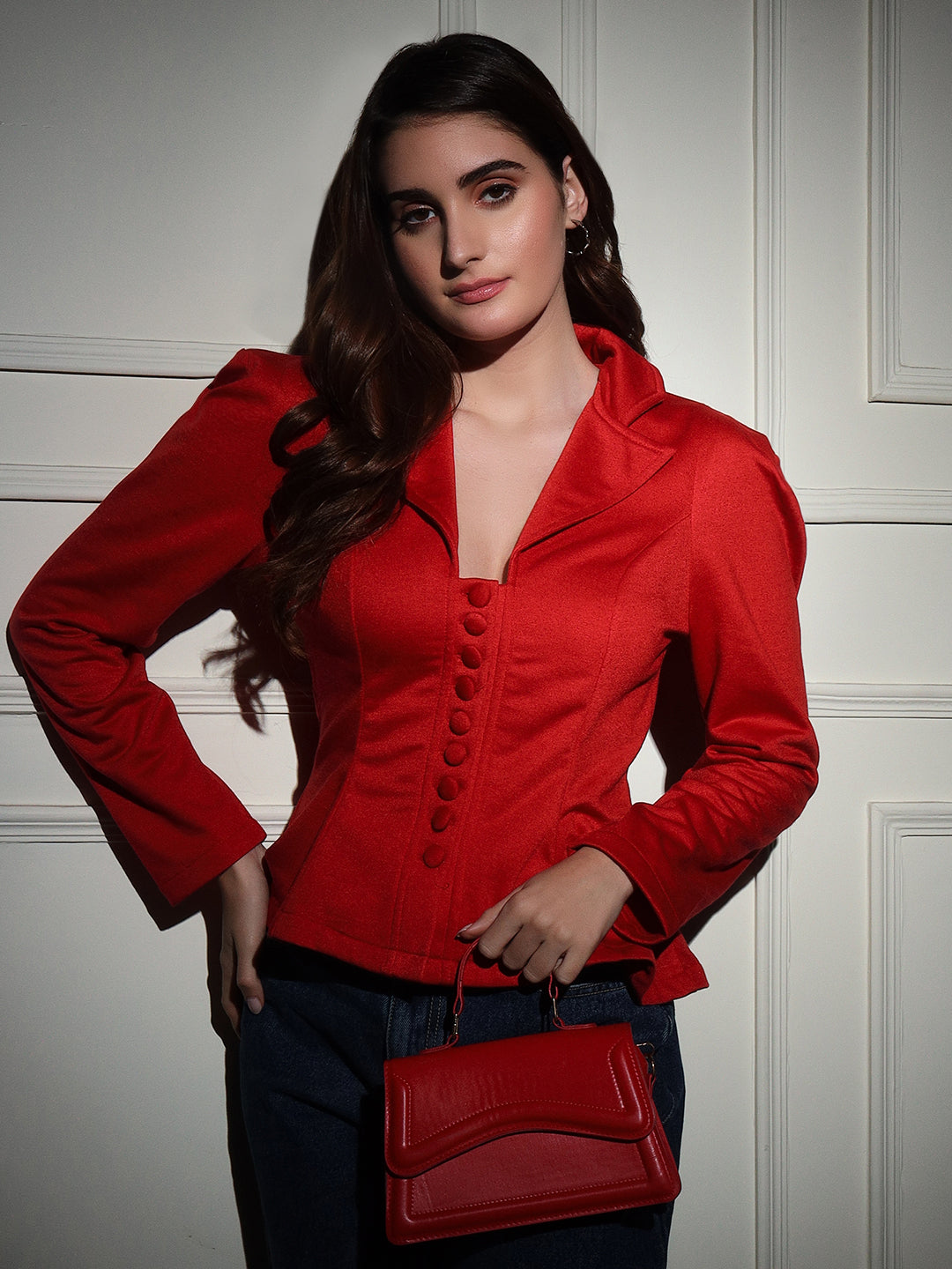Discover the perfect blend of style and functionality with TANDUL's Polyester Solid Coat for Women. The single breasted coat features long sleeves, a lapel collar, and a button closure for a classic, sophisticated look. The polyester fabric ensures easy care and makes it ideal for casual occasions. Pack of 1 in red, it's a must-have for any woman's wardrobe.