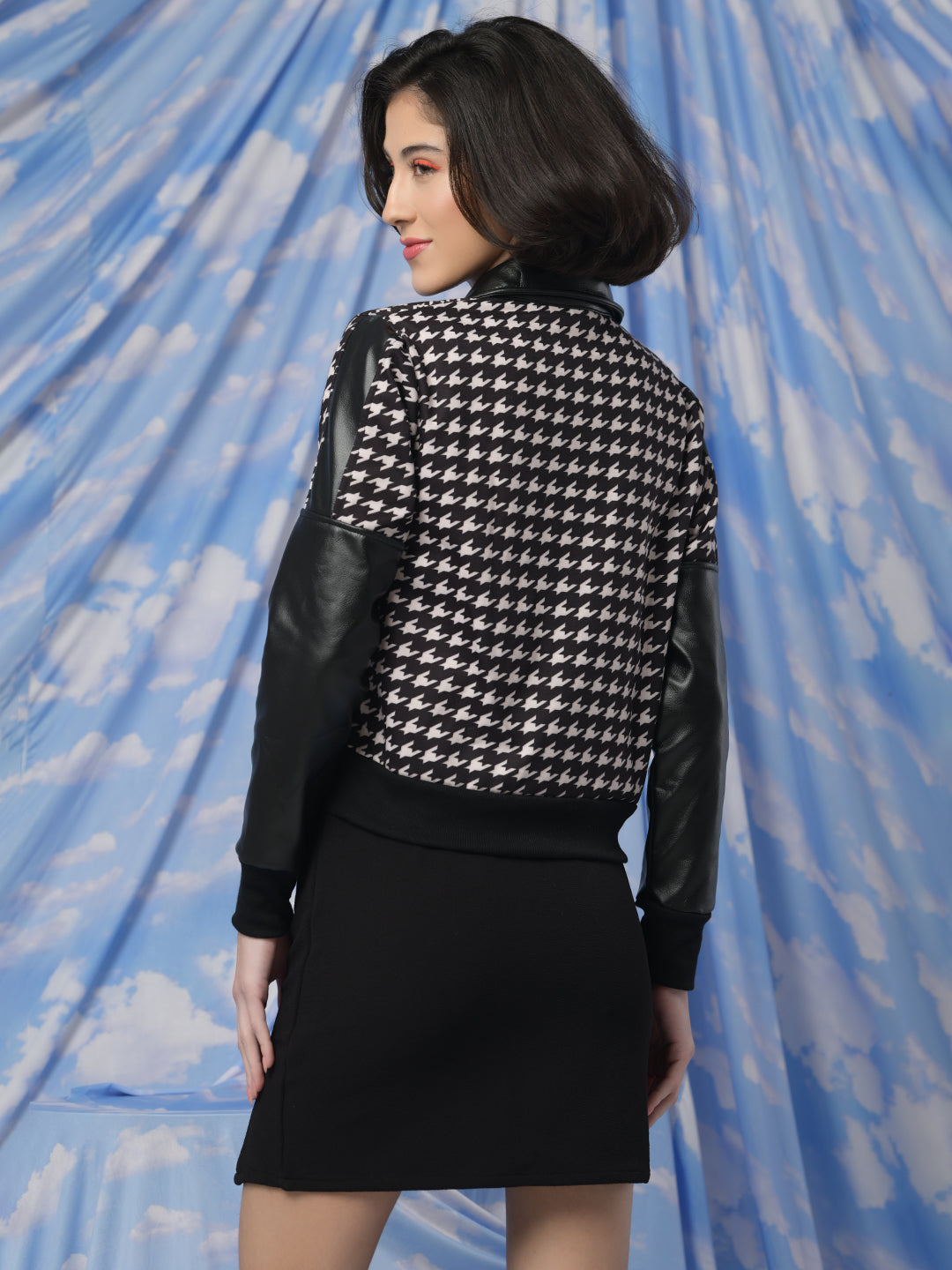 The TANDUL Women Houndstooth Fleece Jacket is the perfect addition to your wardrobe. Made with soft and cozy fleece fabric, this jacket features a striking houndstooth pattern and a full zipper closure for added style and convenience. The spread collar adds a touch of sophistication, making it ideal for western wear. With gentle machine wash and a net quantity of 1, this fleece jacket is a must-have for any fashion-forward woman.