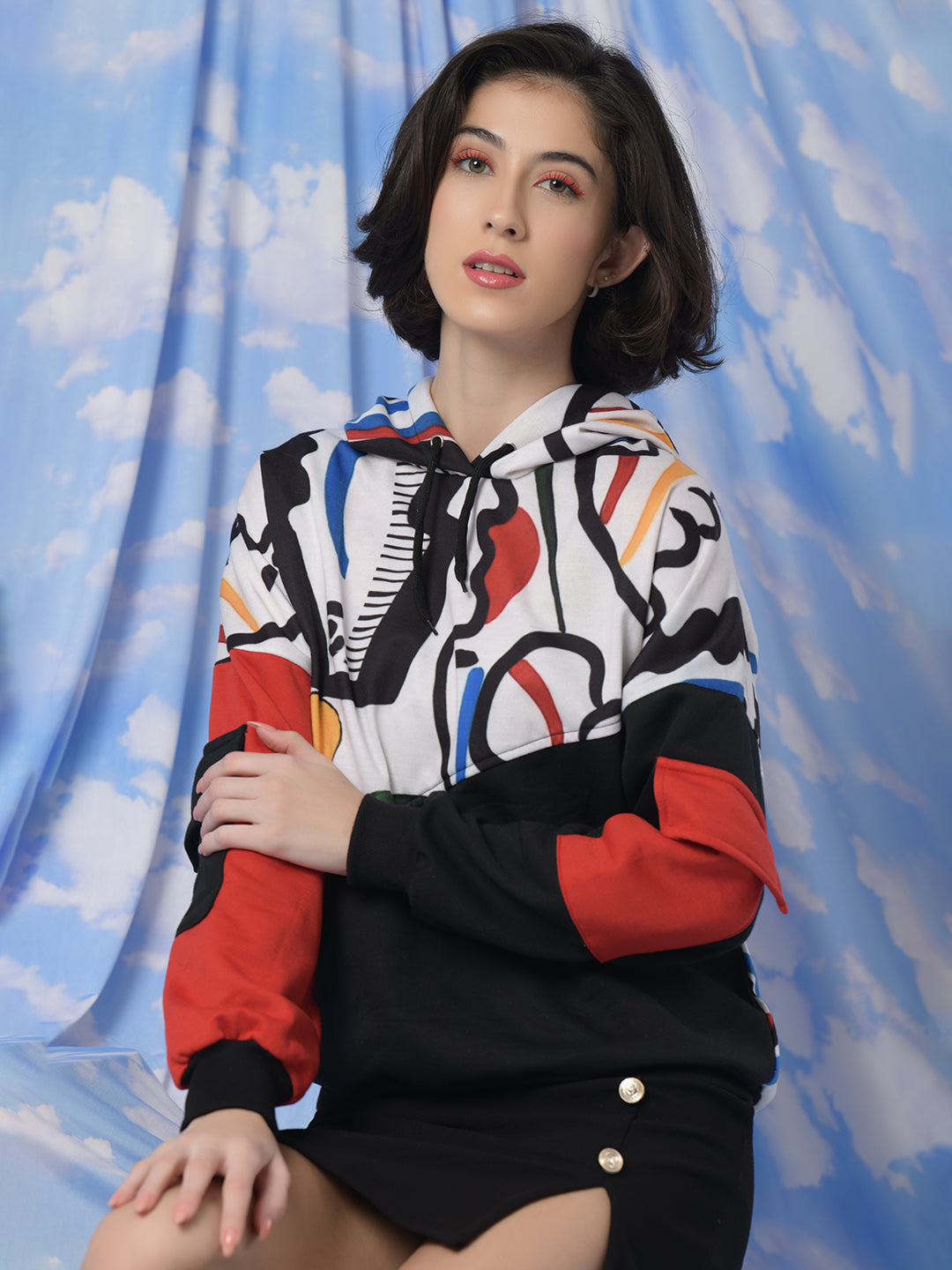Expertly crafted for comfort and style, the TANDUL Women Full Sleeve Printed Hooded Sweatshirt is a must-have addition to your wardrobe. Made with cozy fleece fabric, this sweatshirt features a stylish printed pattern and a convenient hooded neck. Perfect for casual occasions, it's easy to care for with gentle machine wash. Available in white, it's suitable for a variety of western wear outfits.
