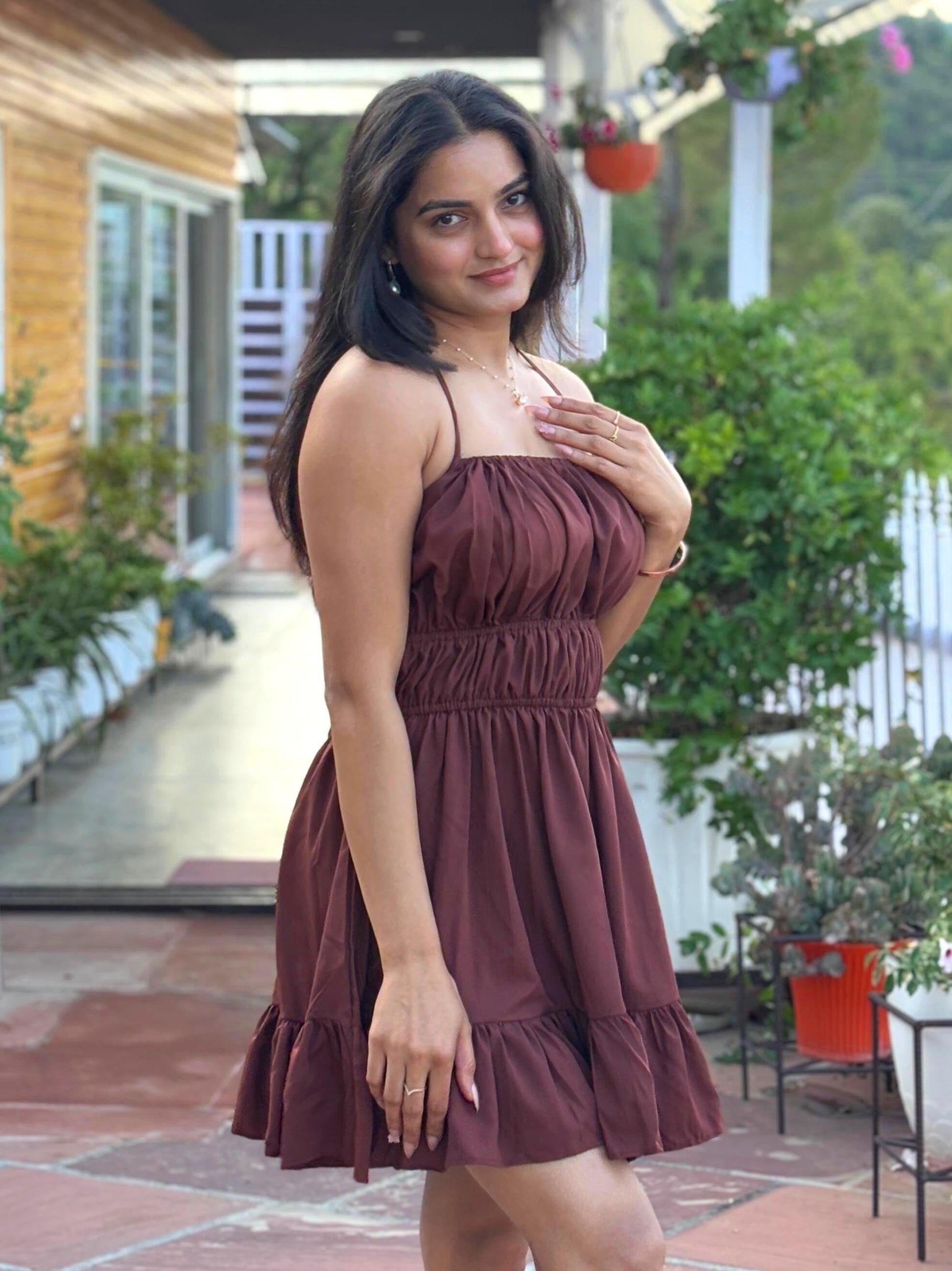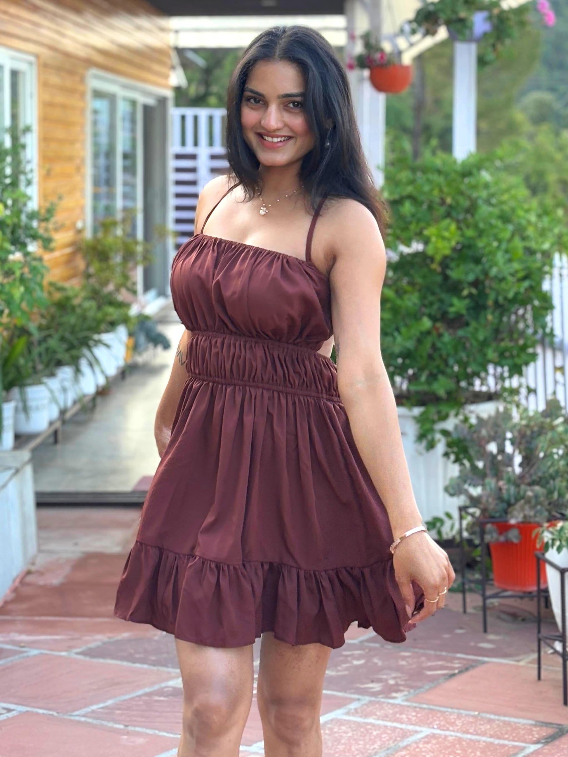 This charming brown solid dress features a delightful pattern, perfect for adding a touch of elegance to any occasion. Crafted from high-quality materials, it offers both comfort and style, making it an ideal choice for warm weather events. The vibrant colors and intricate floral design create a playful yet sophisticated look, ensuring that the wearer stands out with grace and confidence.