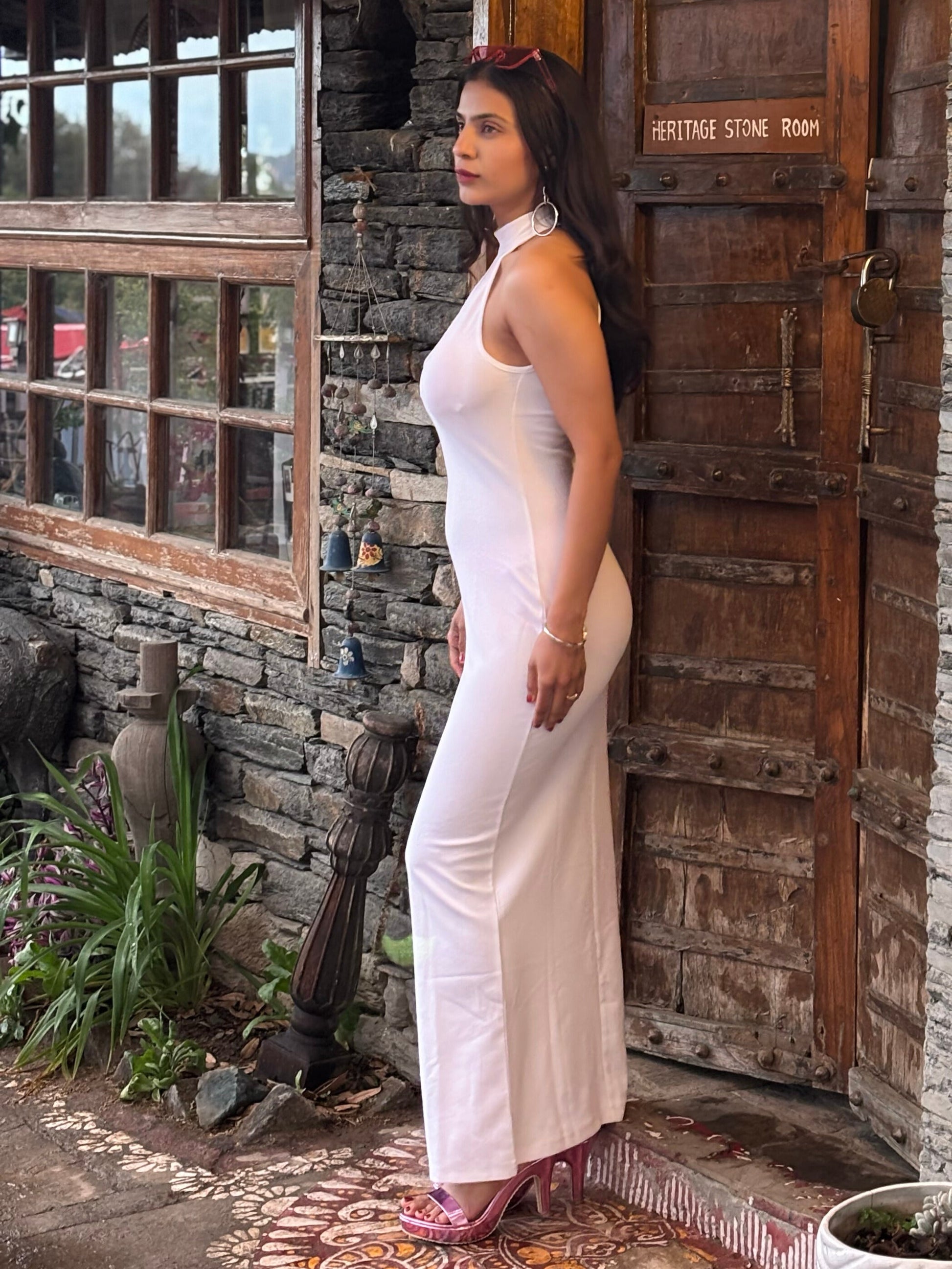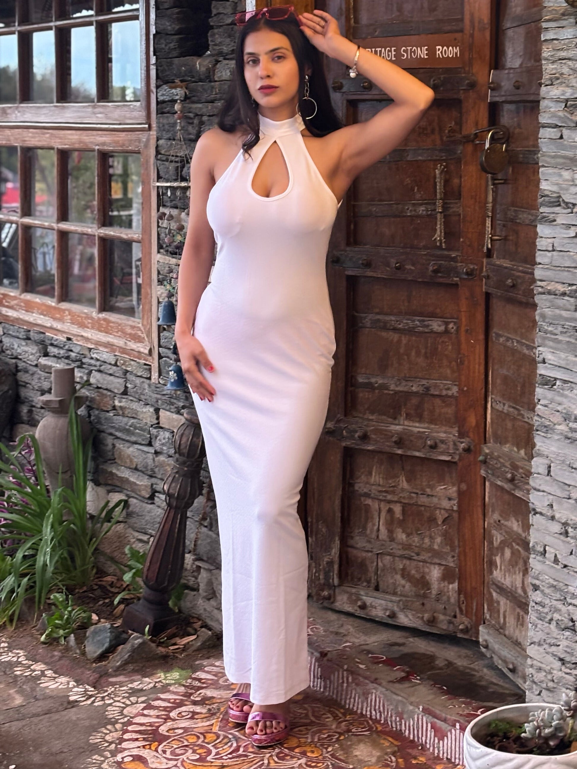 This Women Bodycon White Dress is ideal for a modern and confident look. The solid pattern and maxi/full length give an elegant feel while the Lycra blend fabric ensures a comfortable fit. With fabric care instructions of regular machine wash, this dress is perfect for any woman's wardrobe.