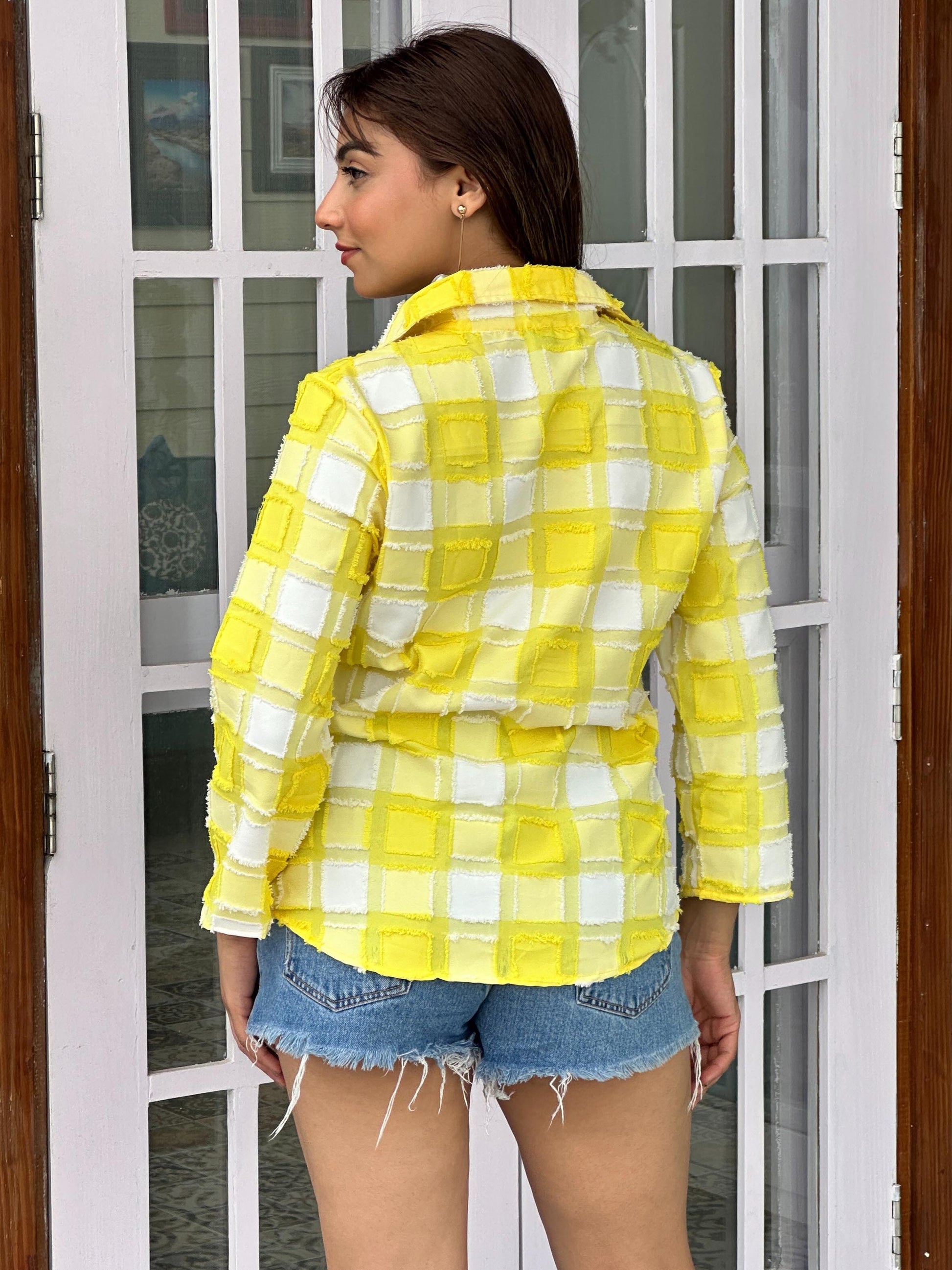 Elevate your wardrobe with this stylish yellow and white plaid shirt, perfect for any occasion. Crafted from high-quality fabric, it offers both comfort and durability, making it an ideal choice for casual outings or layered looks. The classic plaid pattern adds a timeless touch, while the tailored fit ensures a flattering silhouette. Pair it with jeans or chinos for a polished yet relaxed ensemble that showcases your sense of style. Don't miss out on this versatile staple that combines fashion and function effortlessly.
