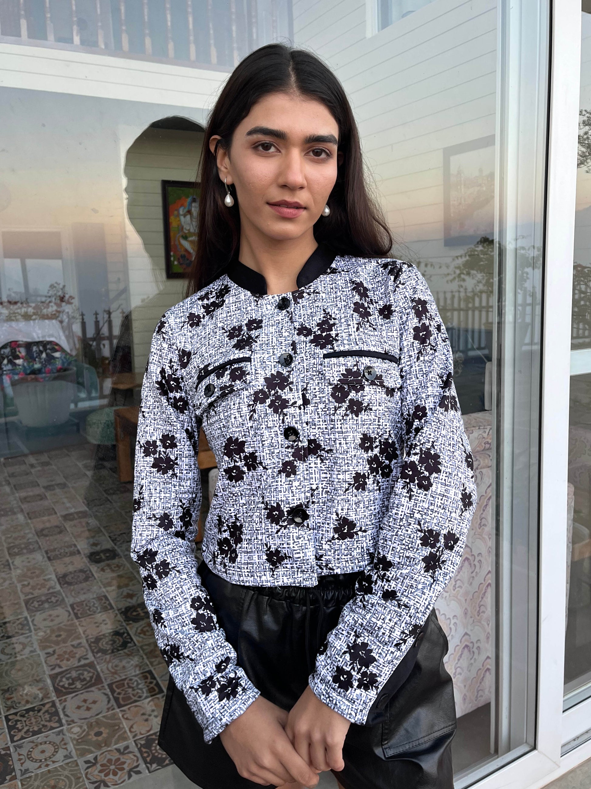 TANDUL Women Stunning Black and White Floral Print Jacket
