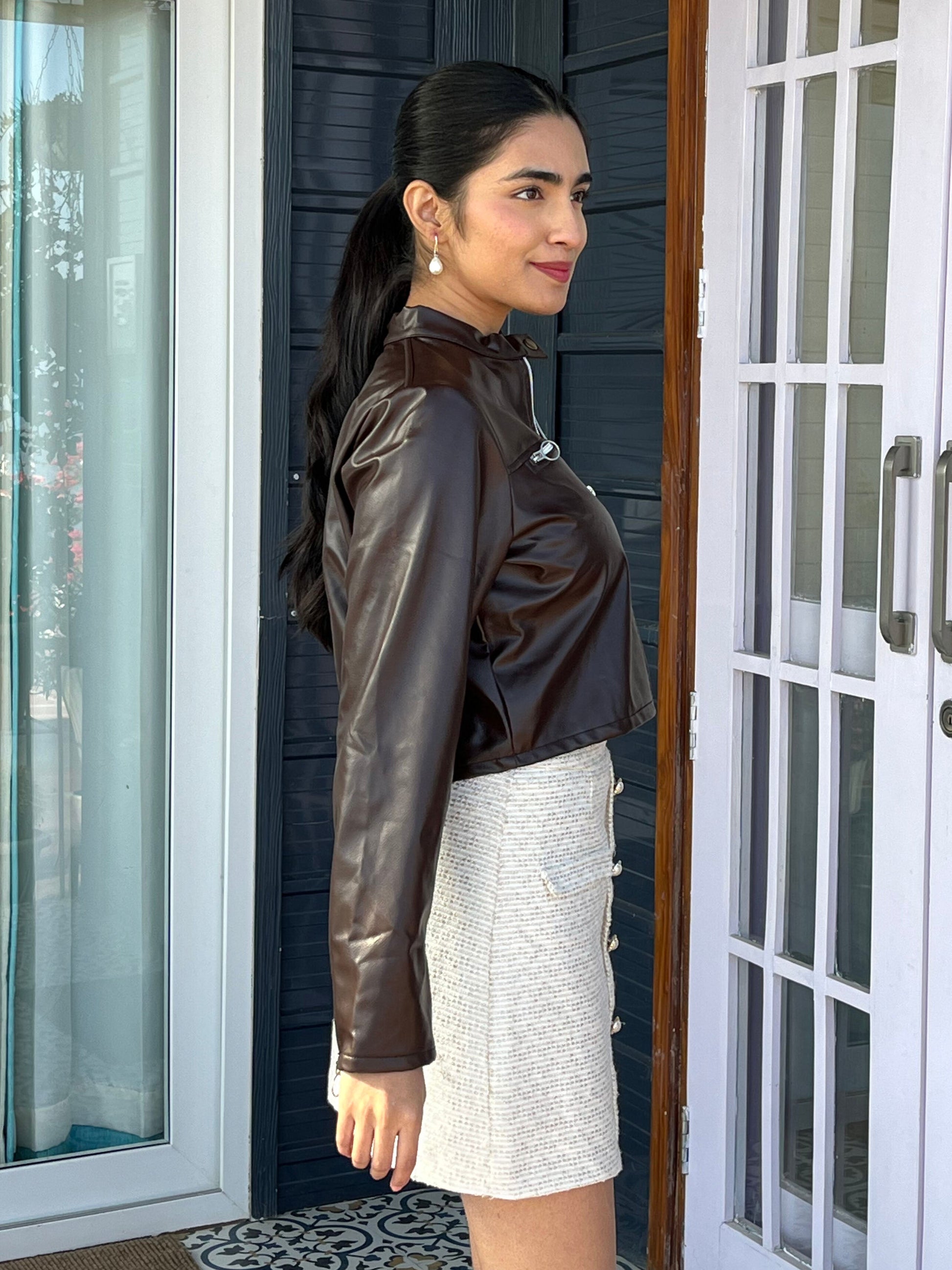 Discover timeless elegance with this women's brown leather jacket, expertly crafted to elevate any wardrobe. The rich, versatile brown tone complements diverse skin tones and pairs effortlessly with casual or formal attire. Constructed from premium leather, this jacket delivers exceptional durability while maintaining a supple, comfortable feel against the skin. The tailored silhouette flatters various body types, creating a polished appearance whether you're heading to the office, weekend brunch, or evening events. Quality stitching and refined detailing showcase expert craftsmanship, ensuring this investment piece remains a reliable favorite for years to come. A sophisticated essential that transitions seamlessly across seasons and occasions.