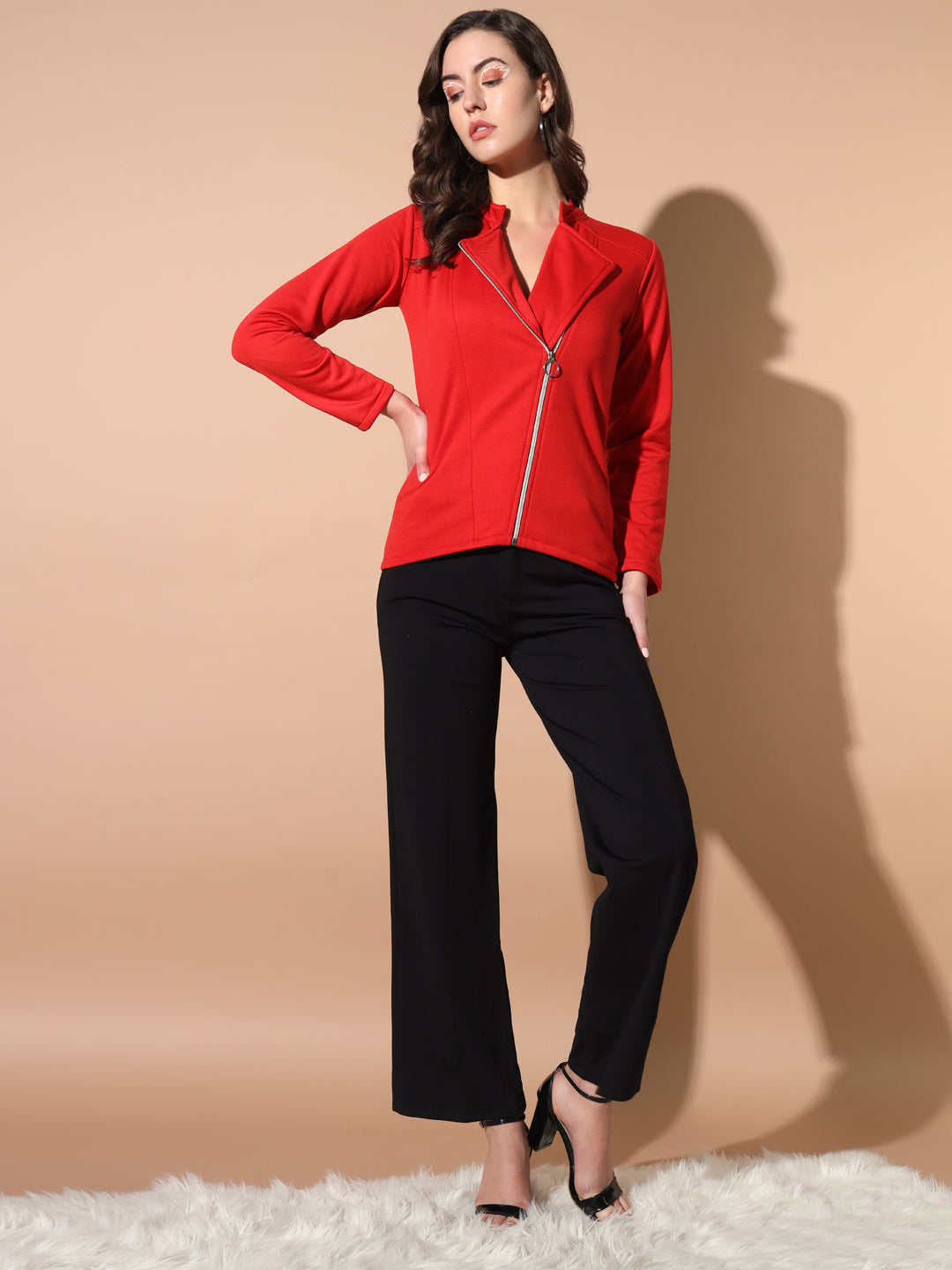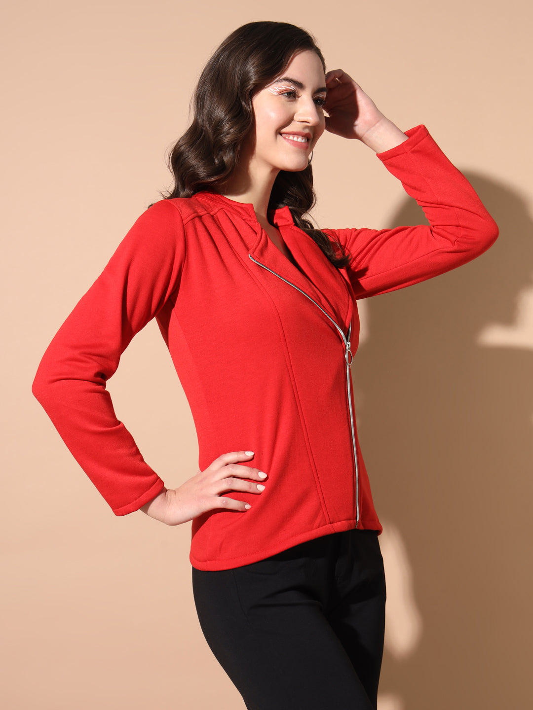 Discover comfort and style with TANDUL Women's Casual Jacket. Made of warm fleece fabric, this solid red jacket is perfect for Western wear. With a full zipper closure and regular cuffs, it offers a snug fit. Machine washable and available in 4 sizes, this jacket is a must-have for any woman's wardrobe.