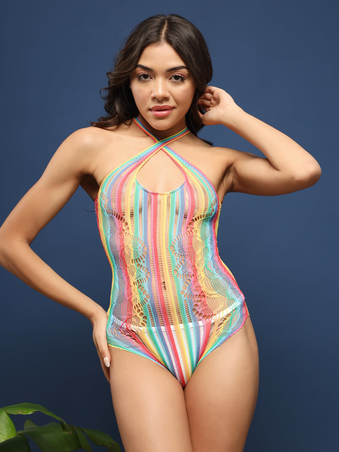 This is our exclusive collection which drag sensation. This body stoking comes in a mesh lace fabric and features a detailed hip area at the front and back, sleeveless, body one silhouette and crotchless design.