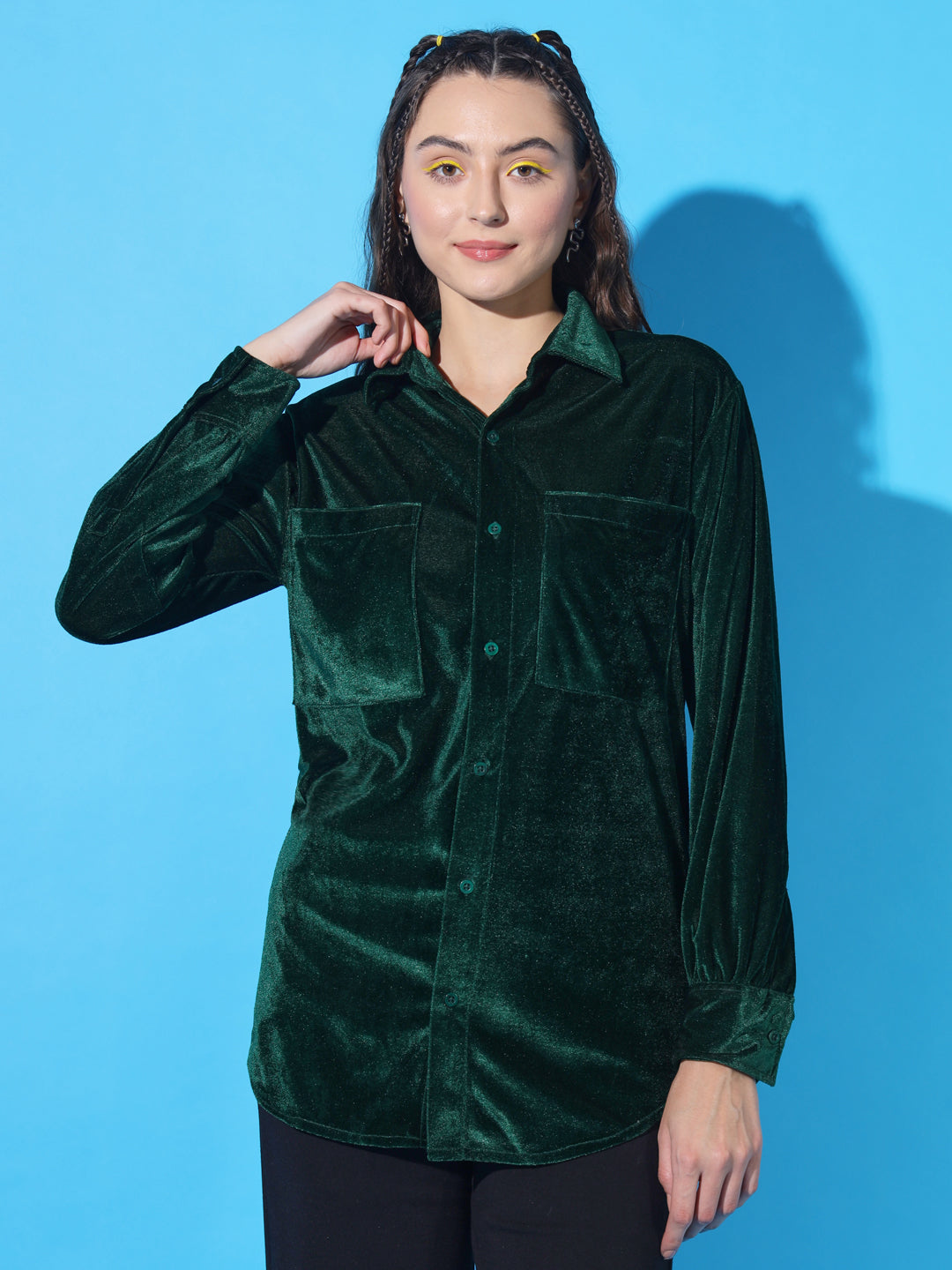 Introducing TANDUL's Regular Fit Solid Casual Shirt for women, crafted with high-quality polyester for comfort and durability. With full sleeves and a solid pattern, this shirt is perfect for western wear and can be easily washed in a regular machine. Comes in a pack of 1, color green.