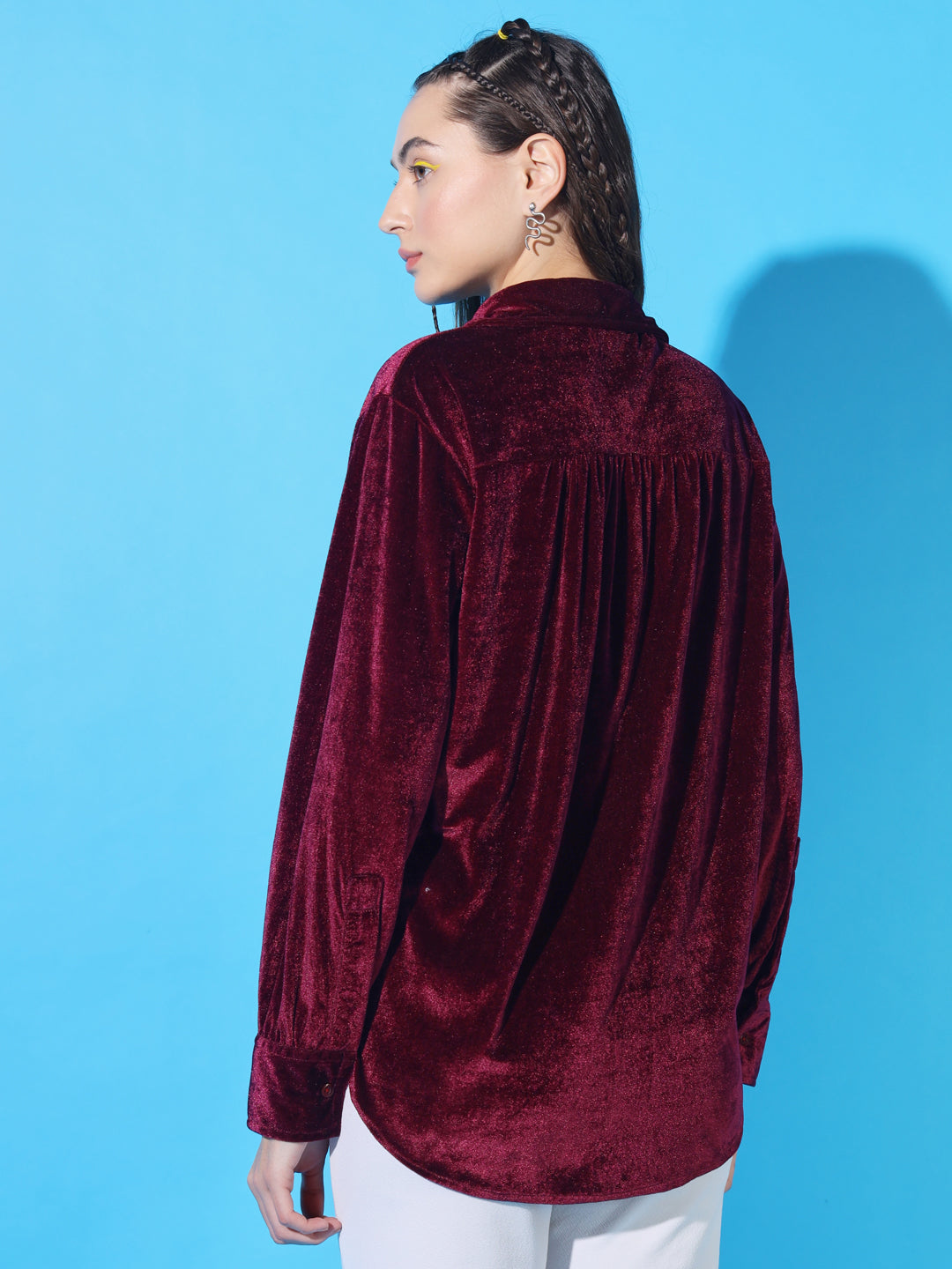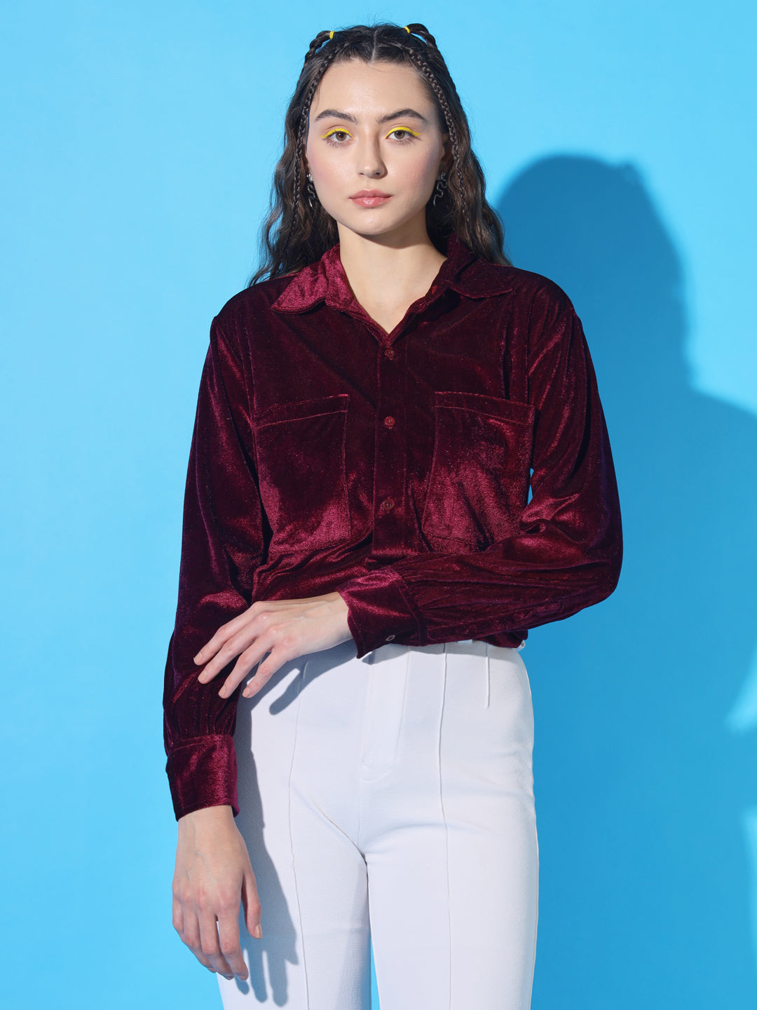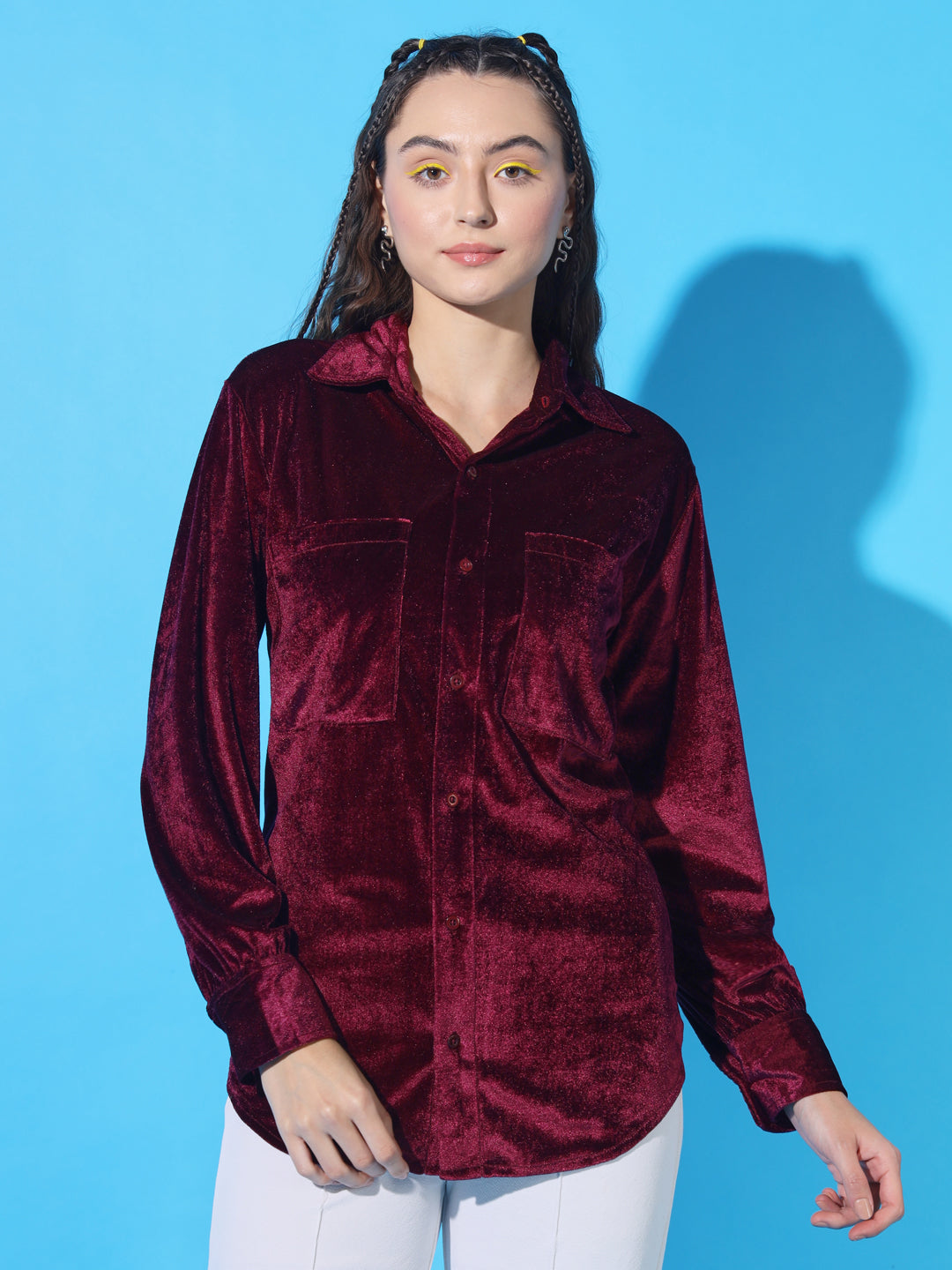Introducing TANDUL Women's Solid Casual Shirt, with regular fit and full sleeves made from high-quality polyester fabric. This versatile piece is perfect for Western wear, and easy to care for with regular machine wash. Experience style and comfort in one package with our Maroon shirt.