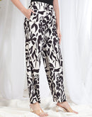 Presenting a striking pair of trousers , featuring a bold black and white patterned design. These trousers are crafted for those seeking to make a fashion statement, combining comfort with contemporary style. Ideal for various occasions, they effortlessly elevate any outfit, making them a versatile addition to your wardrobe.