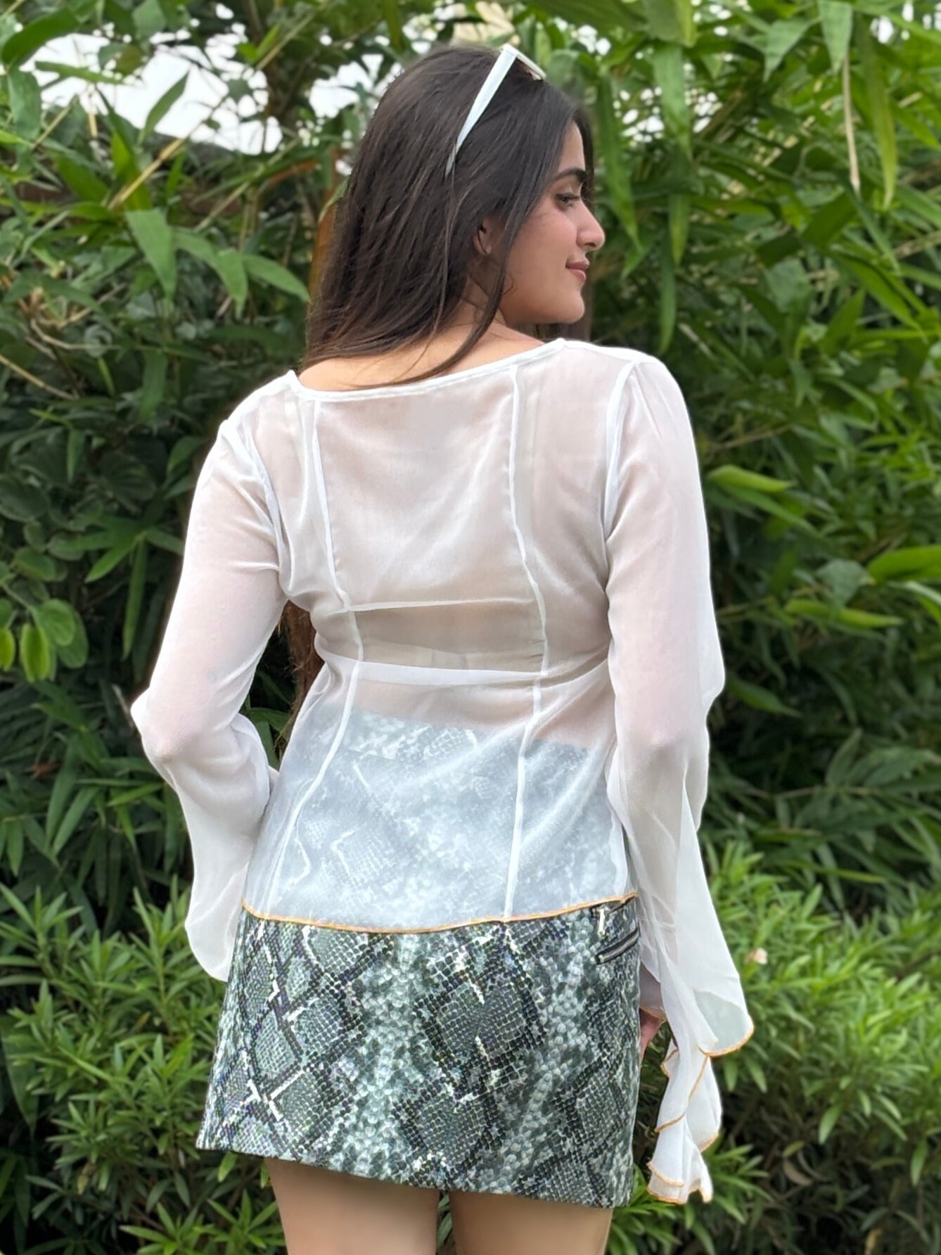 This elegant white top features exquisite frill detail, adding a touch of sophistication to your wardrobe. Crafted from high-quality georgette fabric, it offers both comfort and style, making it perfect for both casual outings and formal events. Elevate your fashion game with this stunning top that effortlessly combines elegance and modernity.