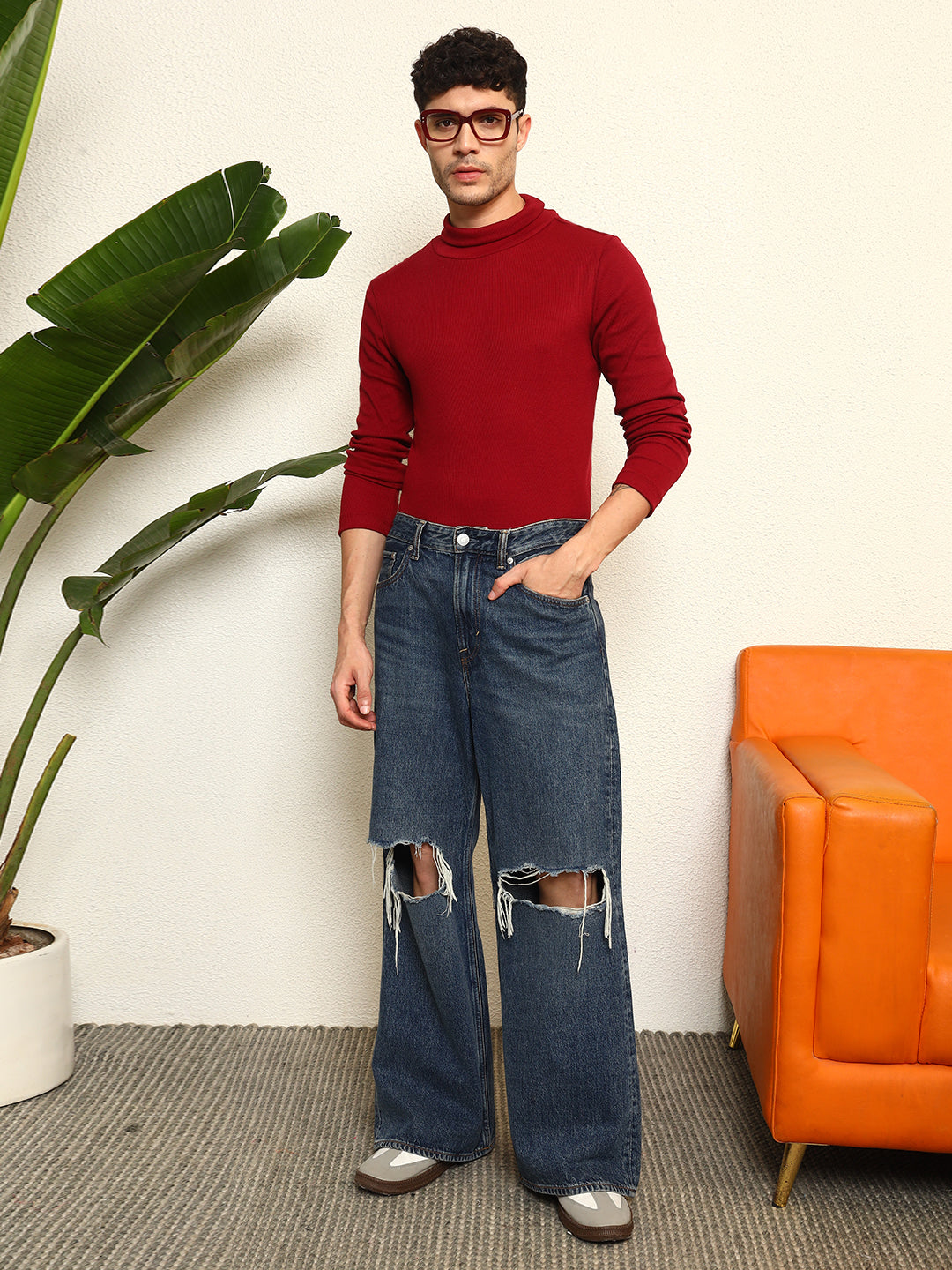 TANDUL Men Solid Turtle Neck Maroon Sweater
