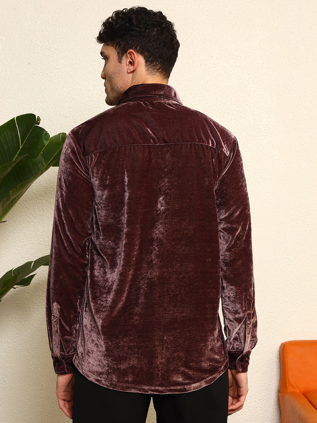 TANDUL Mens's Alluring Purple Velvet Shirt