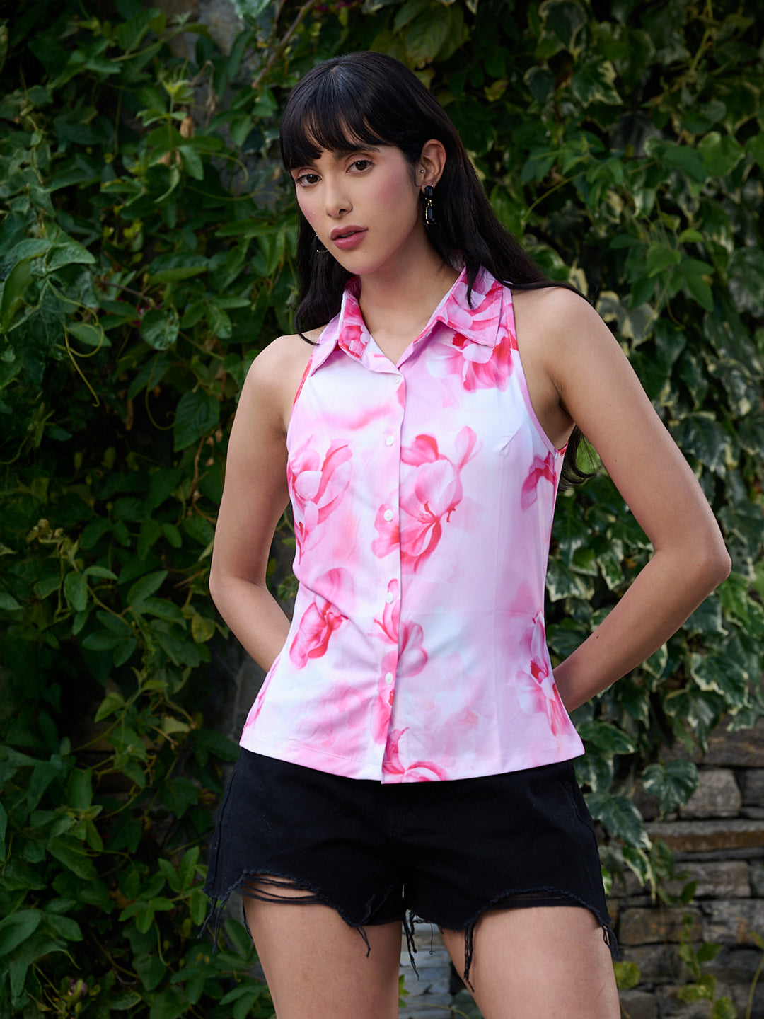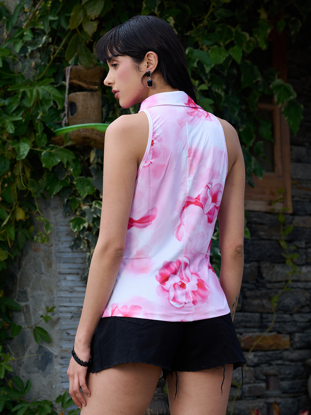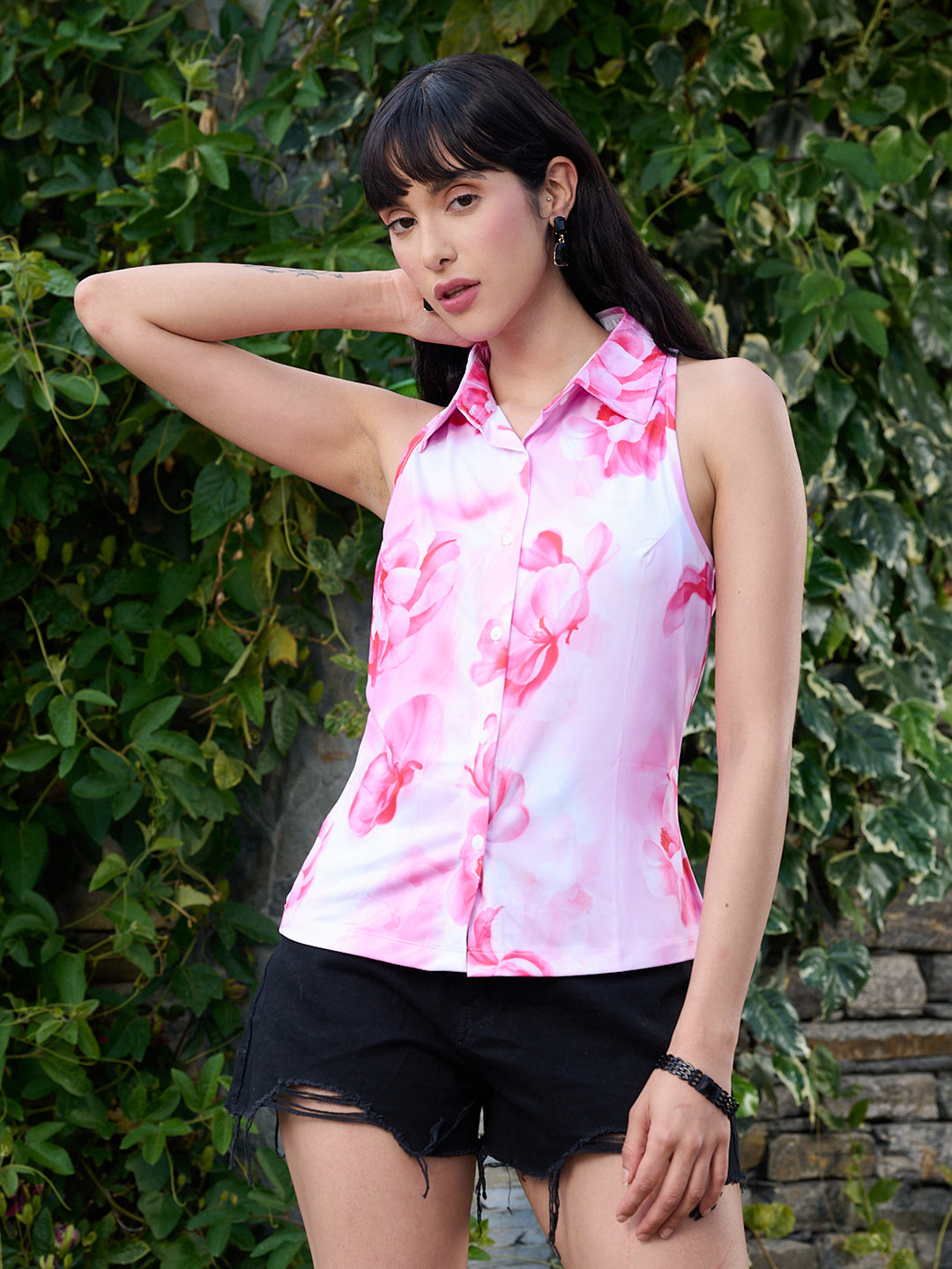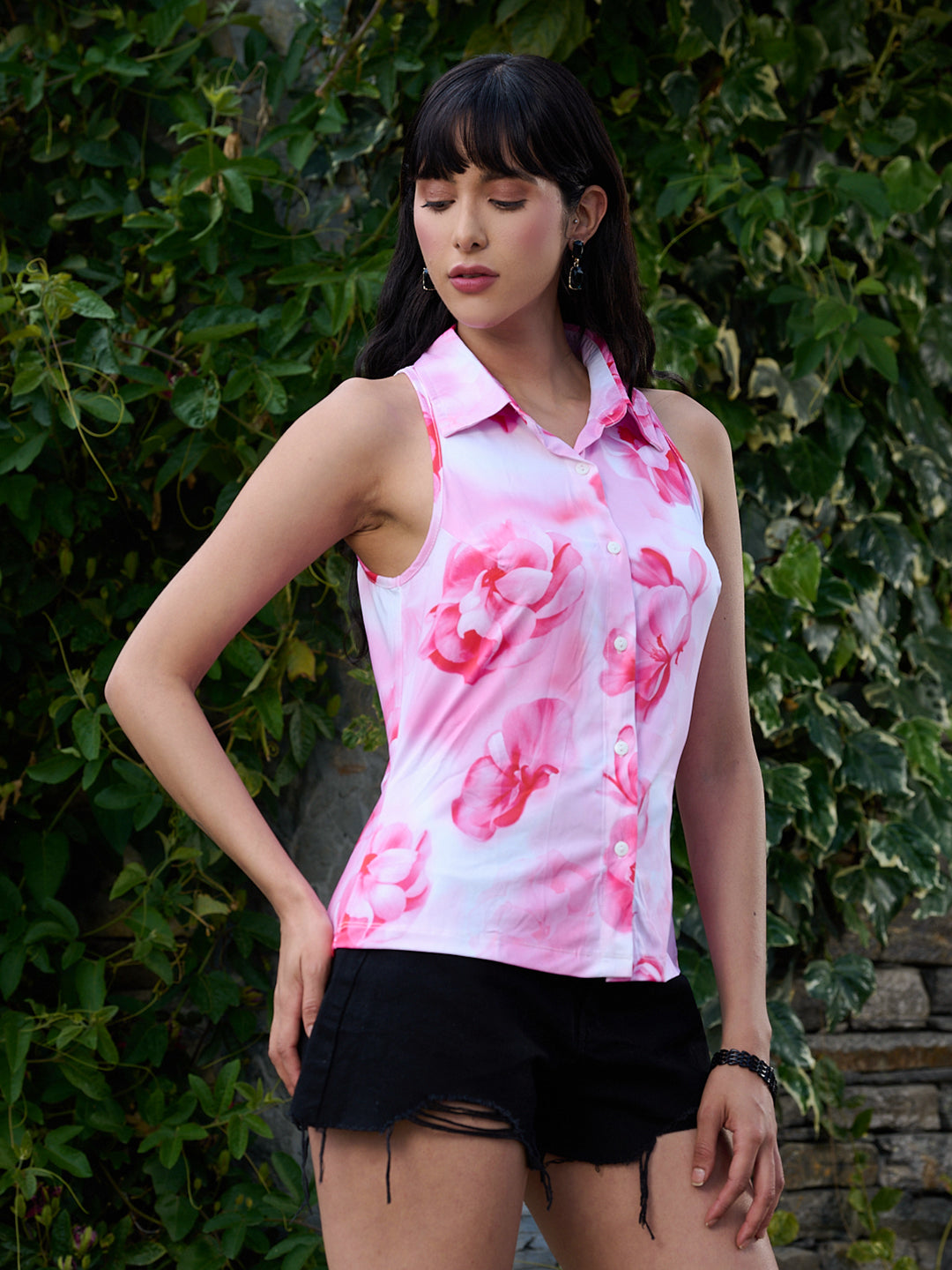 TANDUL Wome Pink Floral Sleeveless Shirt