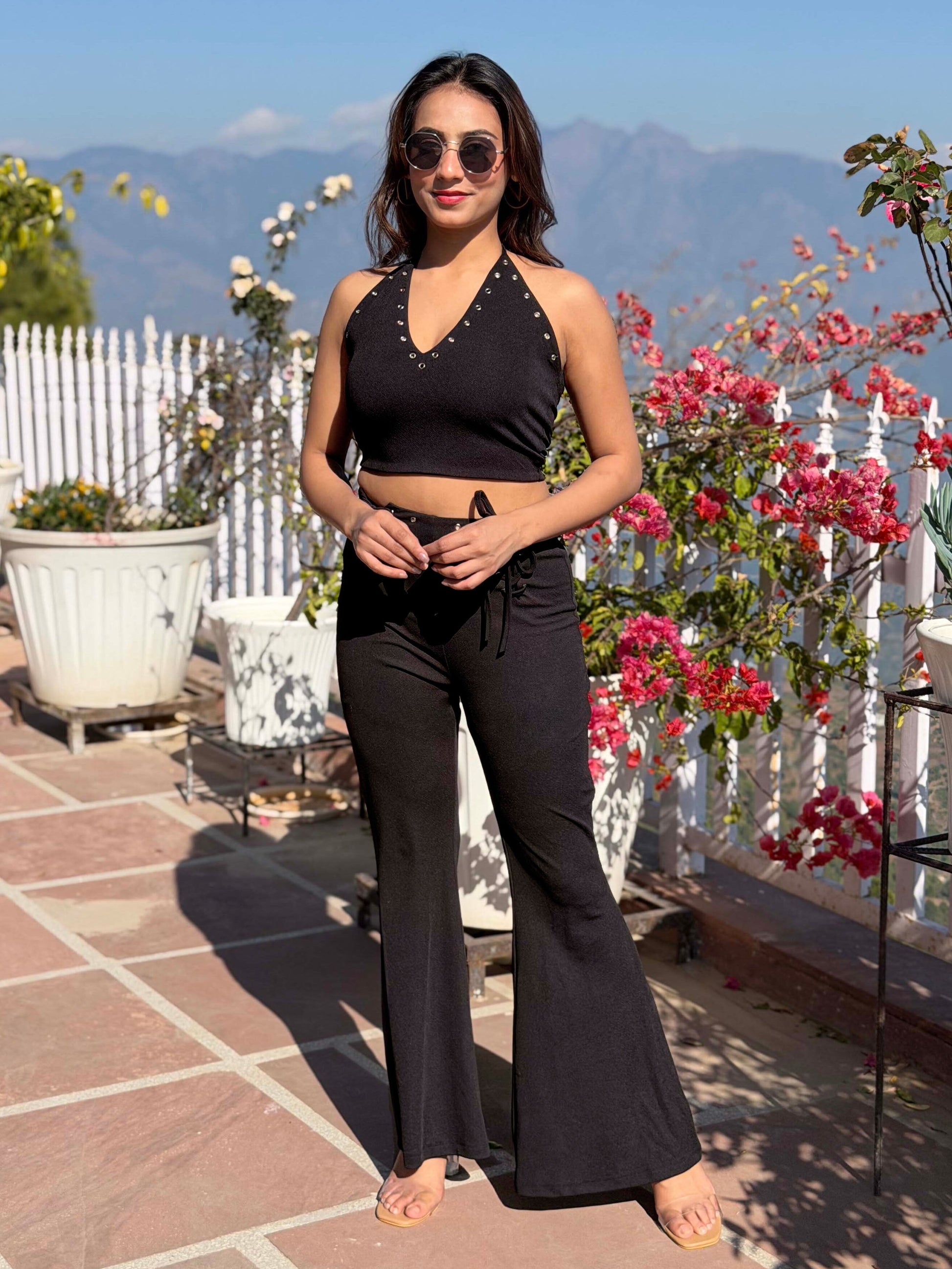 Elevate your wardrobe with this chic black co-ord set. Crafted from high-quality lycra fabric, this co-ord set offers both comfort and style, making it perfect for any occasion. The versatile black color ensures easy pairing with your favorite accessories, while the tailored fit flatters all body types. Ideal for both casual outings and sophisticated events, this timeless look is a must-have addition to your fashion collection.