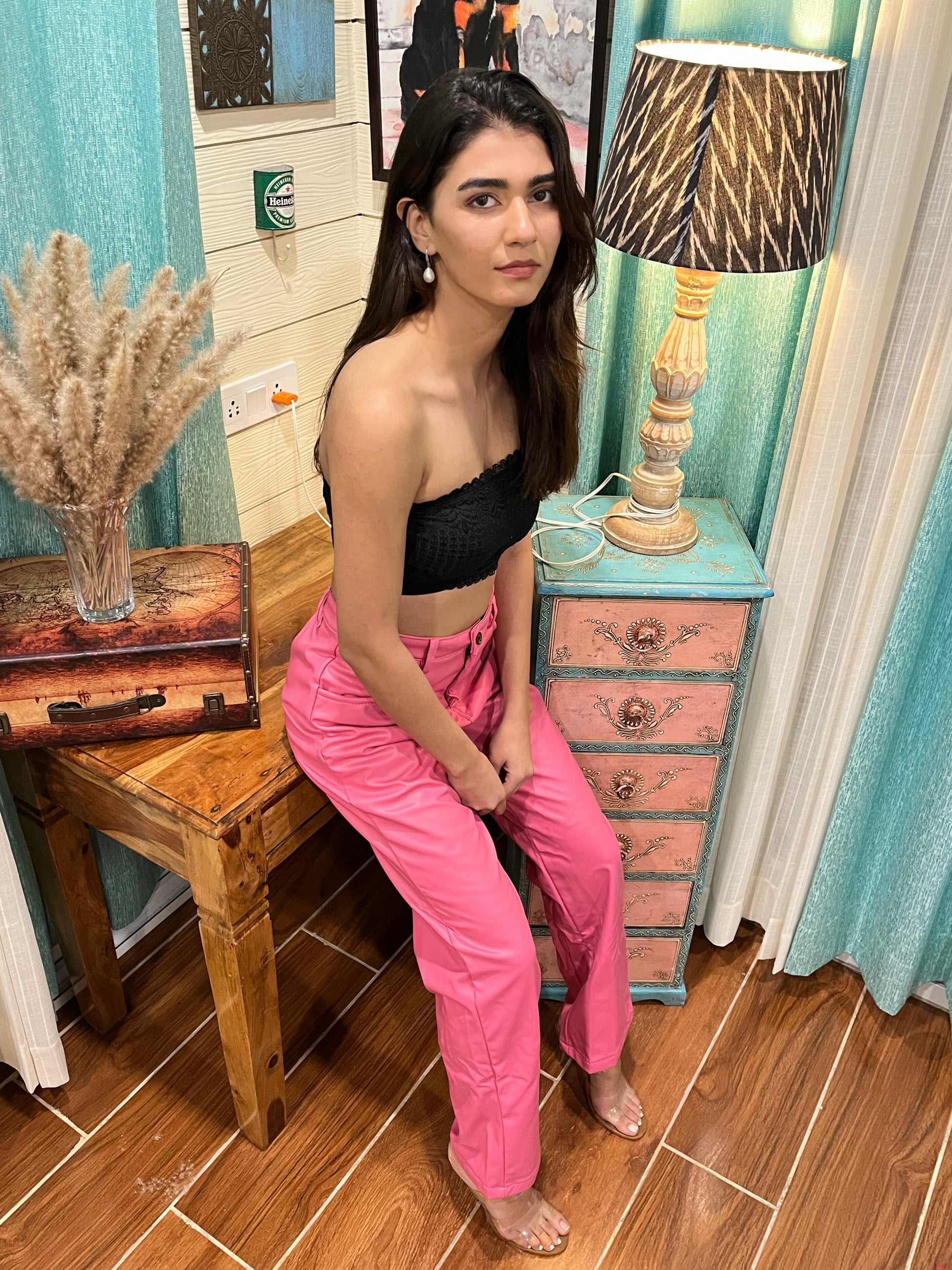Elevate your wardrobe with our chic leather pink trouser perfect for any occasion. Crafted from high-quality, breathable fabric, this stylish trouser offers both comfort and elegance, making it ideal for casual outings or relaxed gatherings. The flattering fit accentuates your silhouette while the vibrant color adds a touch of playfulness to your look. Pair it with your favorite accessories for a complete, fashionable statement that is sure to turn heads.