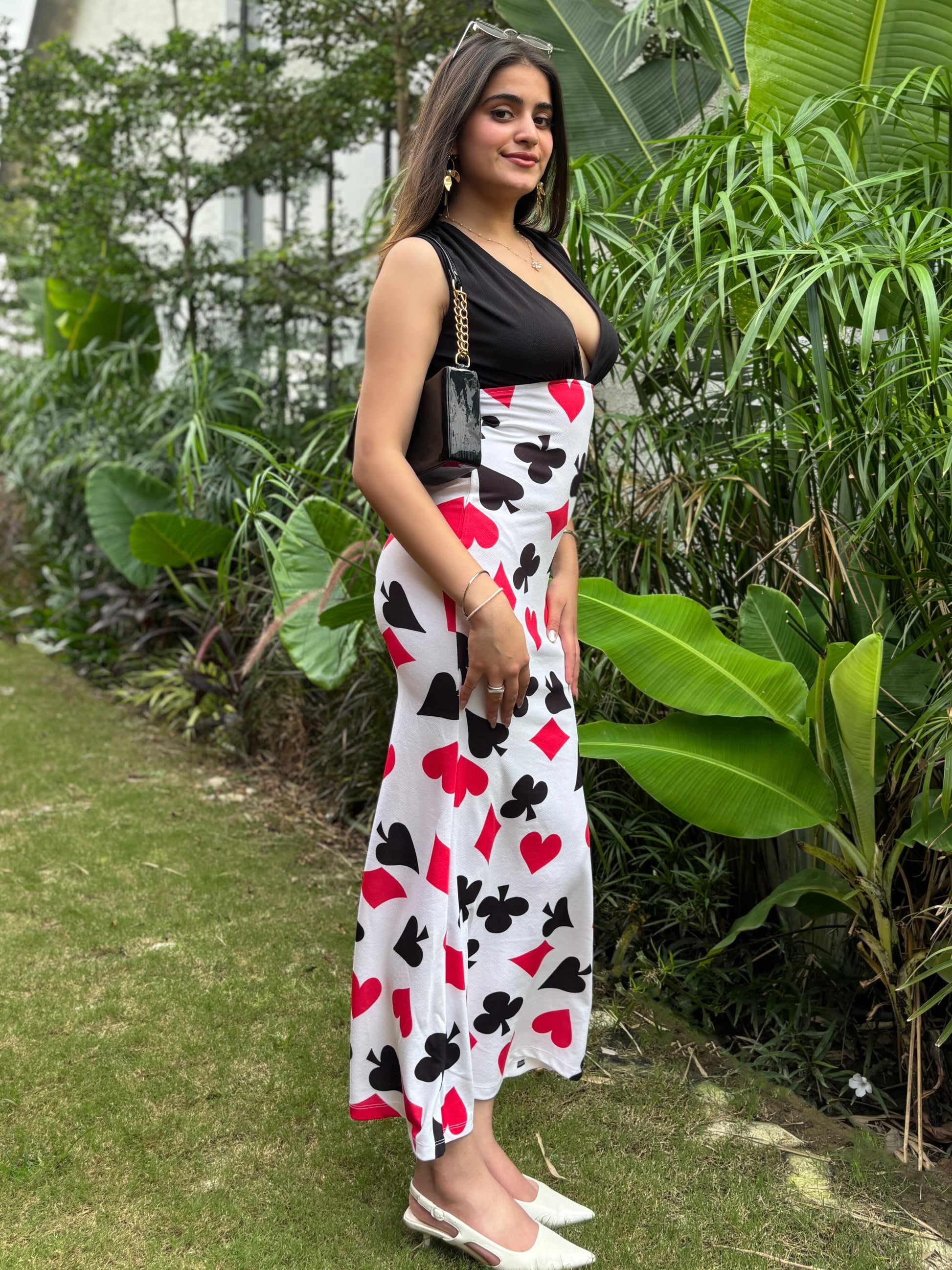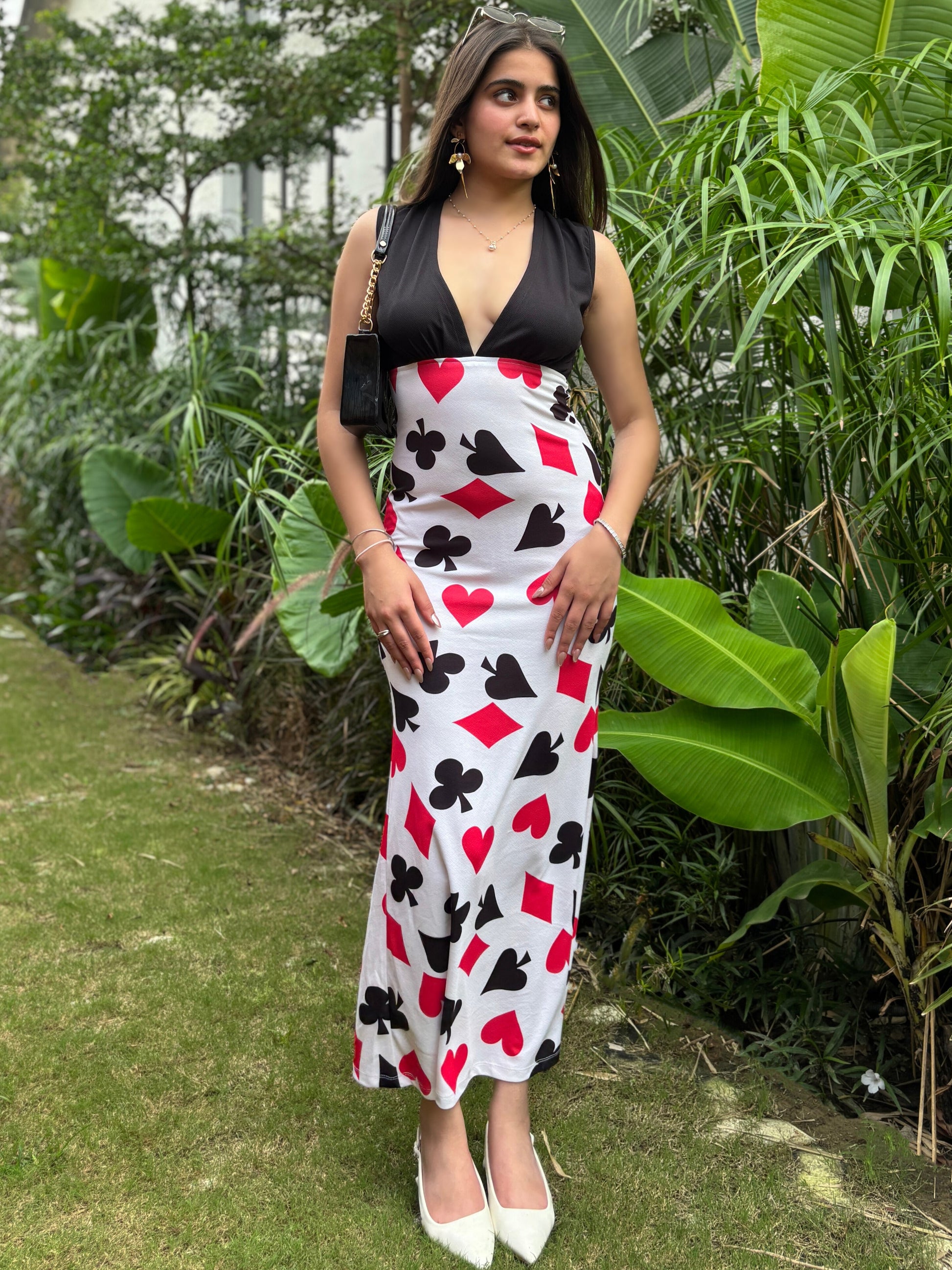 Step into a world of whimsy and charm with our enchanting Playing Cards Dress. This unique piece features a playful print of classic playing cards, making it the perfect choice for those who love to stand out. Crafted from high-quality, breathable fabric, it ensures comfort while exuding a fun, stylish vibe. Whether you're attending a themed party or simply want to add a touch of flair to your everyday wardrobe, this dress is versatile enough to be dressed up or down. Embrace your playful side and make a statement with this delightful addition to your collection.
