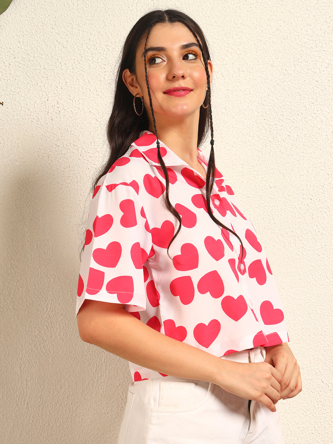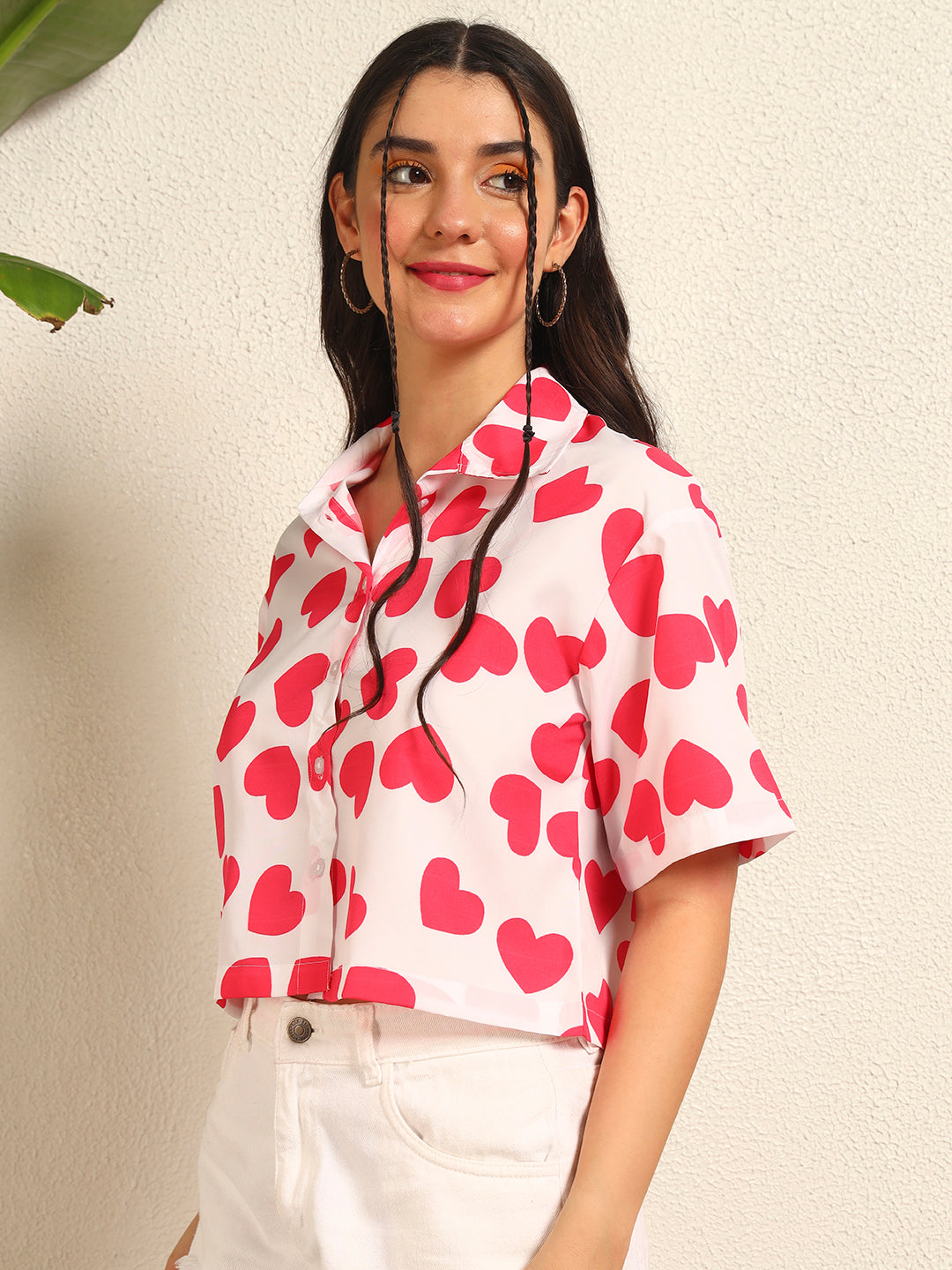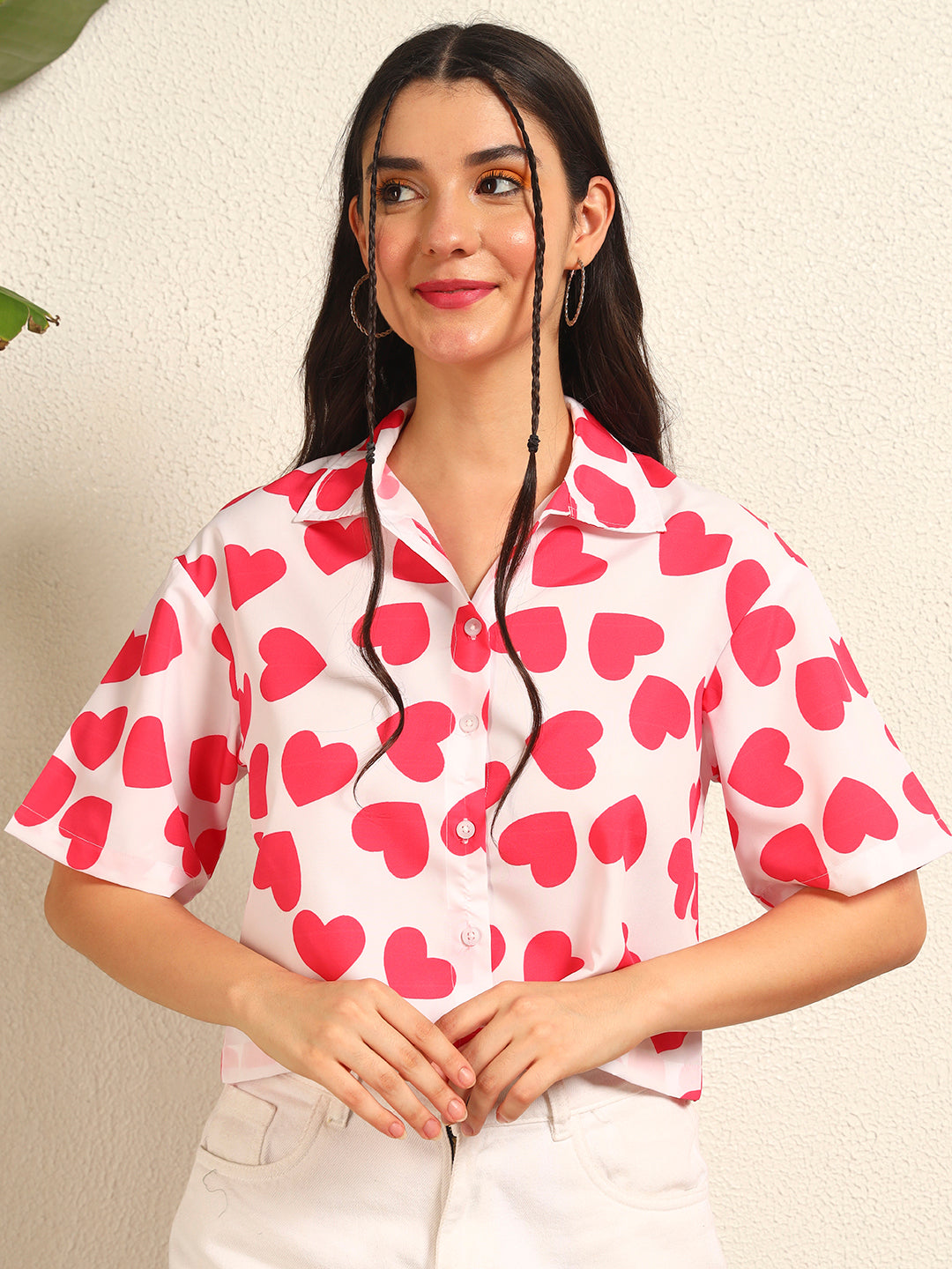 This charming heart-patterned shirt is the perfect addition to your wardrobe, effortlessly blending style and comfort. Crafted from soft, breathable fabric, it ensures all-day wearability while making a bold statement. The playful heart design adds a touch of whimsy, making it ideal for casual outings or cozy gatherings. Pair it with your favorite jeans or a skirt for a look that radiates love and positivity. Elevate your fashion game with this delightful piece that celebrates individuality and joy.