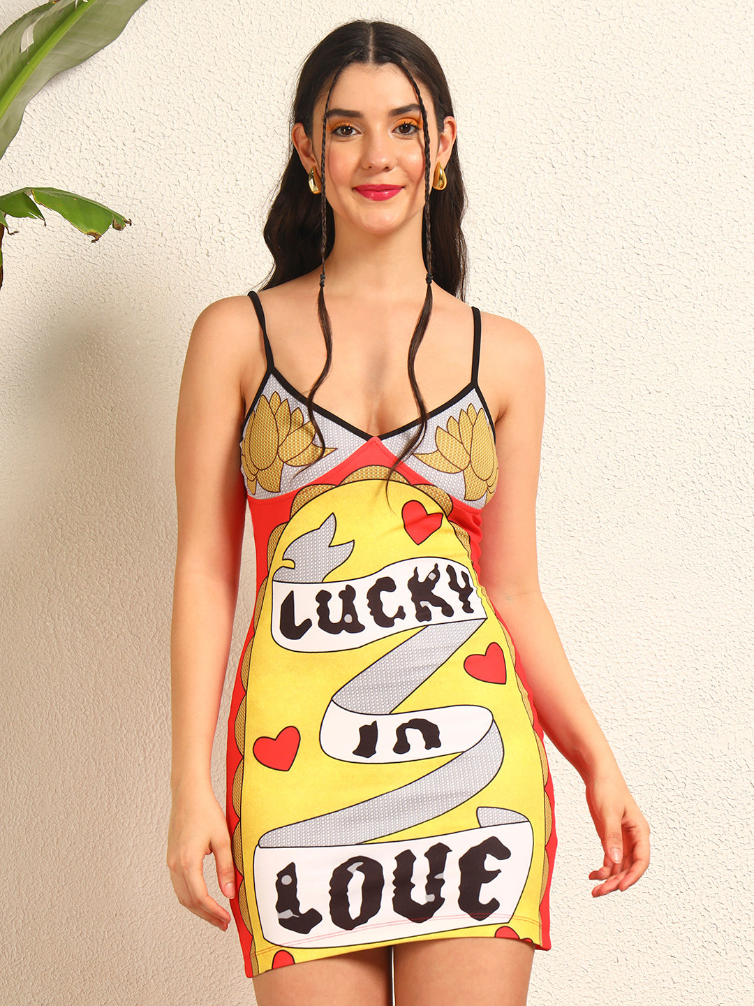 Embrace your romantic side with our "Lucky in Love" dress, a perfect blend of charm and elegance. Crafted from soft, breathable fabric, this dress features a playful yet sophisticated design that showcases the uplifting phrase "Lucky in Love" prominently. Ideal for casual outings or special occasions, it effortlessly combines comfort with style, making it a versatile addition to your wardrobe. Pair it with your favorite accessories for a look that radiates positivity and confidence, ensuring you feel as fabulous as you look.