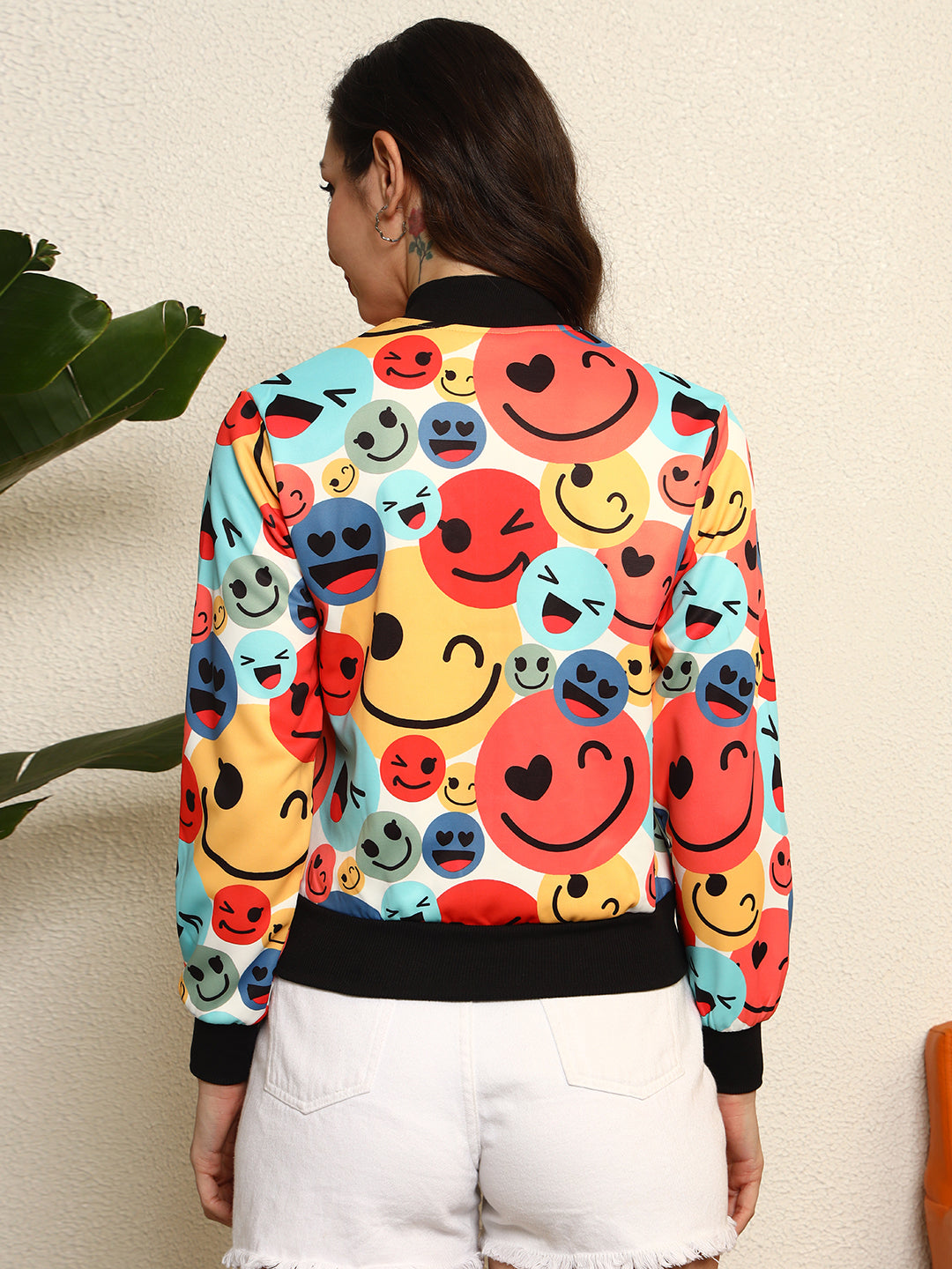 Brighten up your wardrobe with our vibrant Smiley Face Jacket, designed to bring joy and positivity to any outfit. This eye-catching piece features an array of colorful smiley faces, making it the perfect statement jacket for those who love to express their fun side. Crafted from high-quality materials, it offers both comfort and durability, ensuring you stay stylish and cozy all day long. Whether you're heading out for a casual day with friends or looking to add a playful touch to your ensemble, this jacket is a must-have addition to your collection. Embrace the cheerful vibes and make every day a happy one with this unique jacket.
