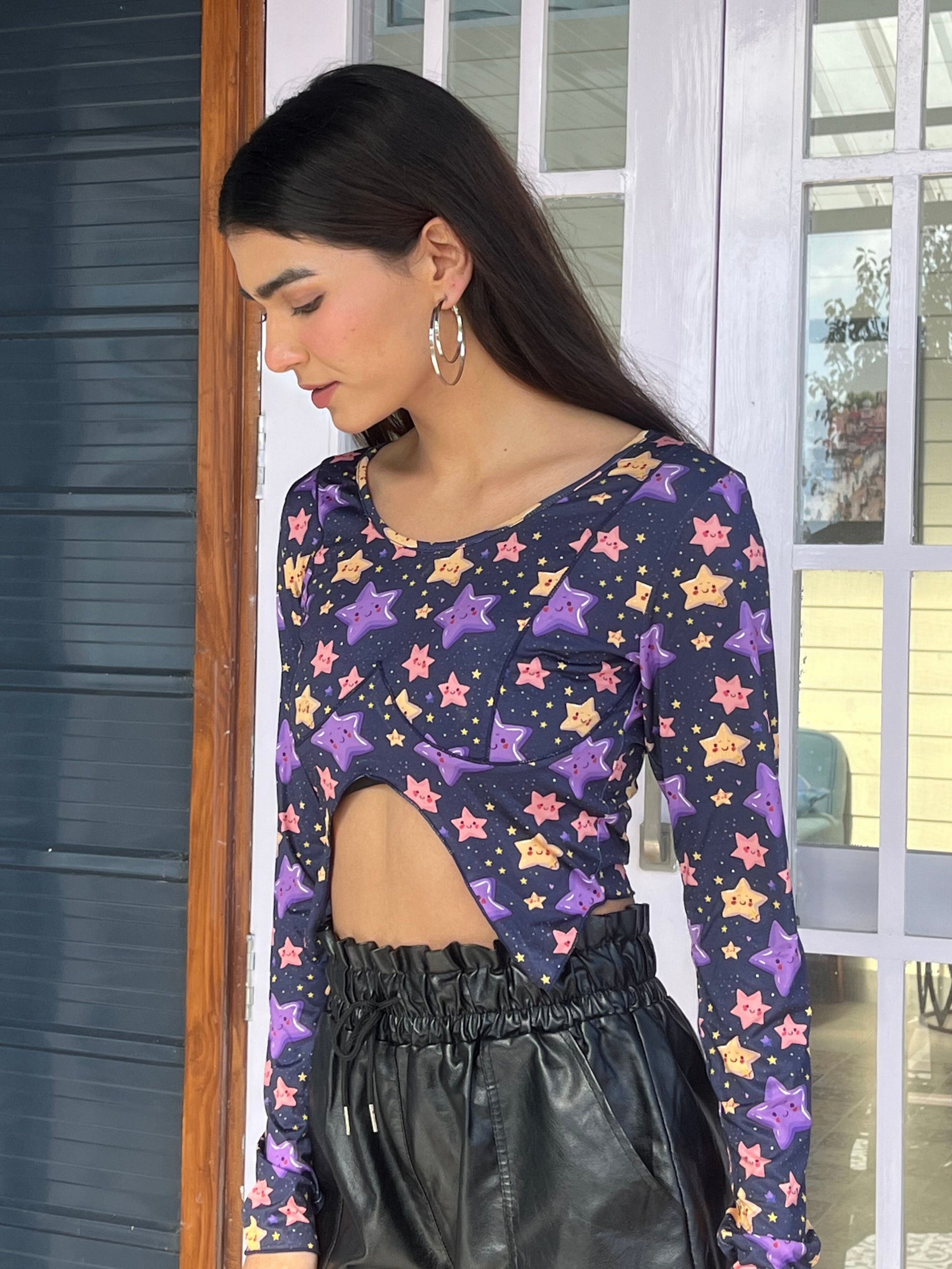 Elevate your wardrobe with this eye-catching purple top adorned with vibrant blue and orange stars. Perfect for making a bold statement, this top combines comfort and style, making it an ideal choice for both casual outings and special occasions. Crafted from high-quality materials, it ensures a flattering fit while providing all-day comfort. Pair it with your favorite jeans or a chic skirt for a look that’s sure to turn heads. Don’t miss the chance to add this unique piece to your collection!