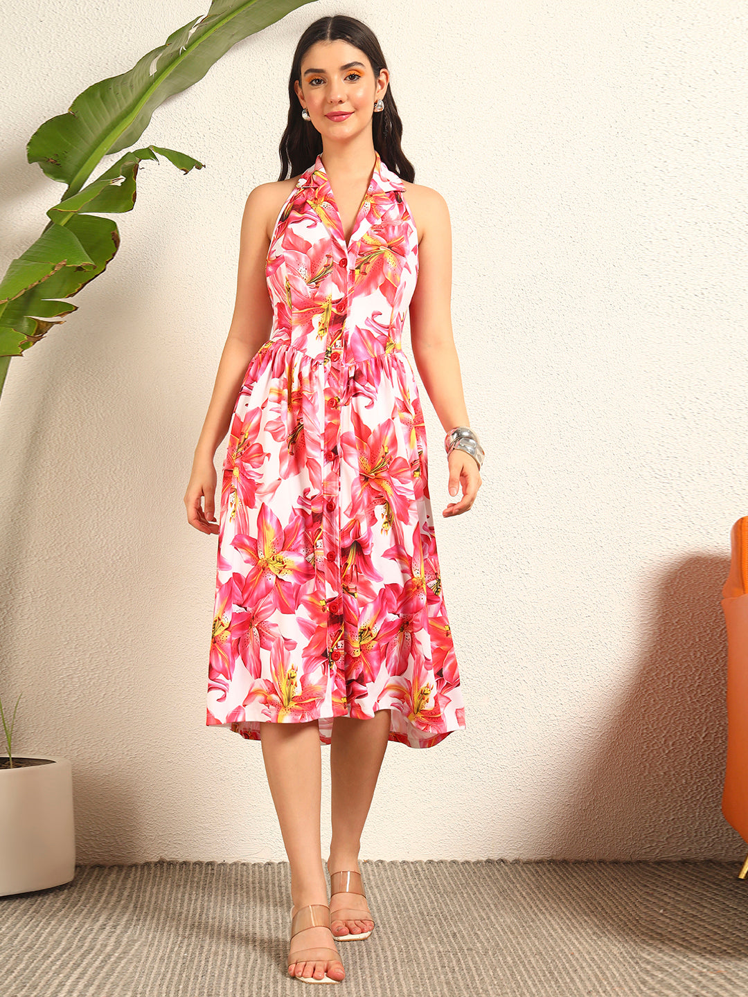 Elevate your wardrobe with our stunning floral dress, adorned with delicate pink flowers that exude femininity and charm. Crafted from lightweight, breathable fabric, this dress ensures all-day comfort while making a bold style statement. Perfect for both casual outings and special occasions, its flattering silhouette enhances your figure, making it a versatile addition to any collection. Embrace the beauty of nature and let this enchanting dress bring a touch of elegance to your everyday look.
