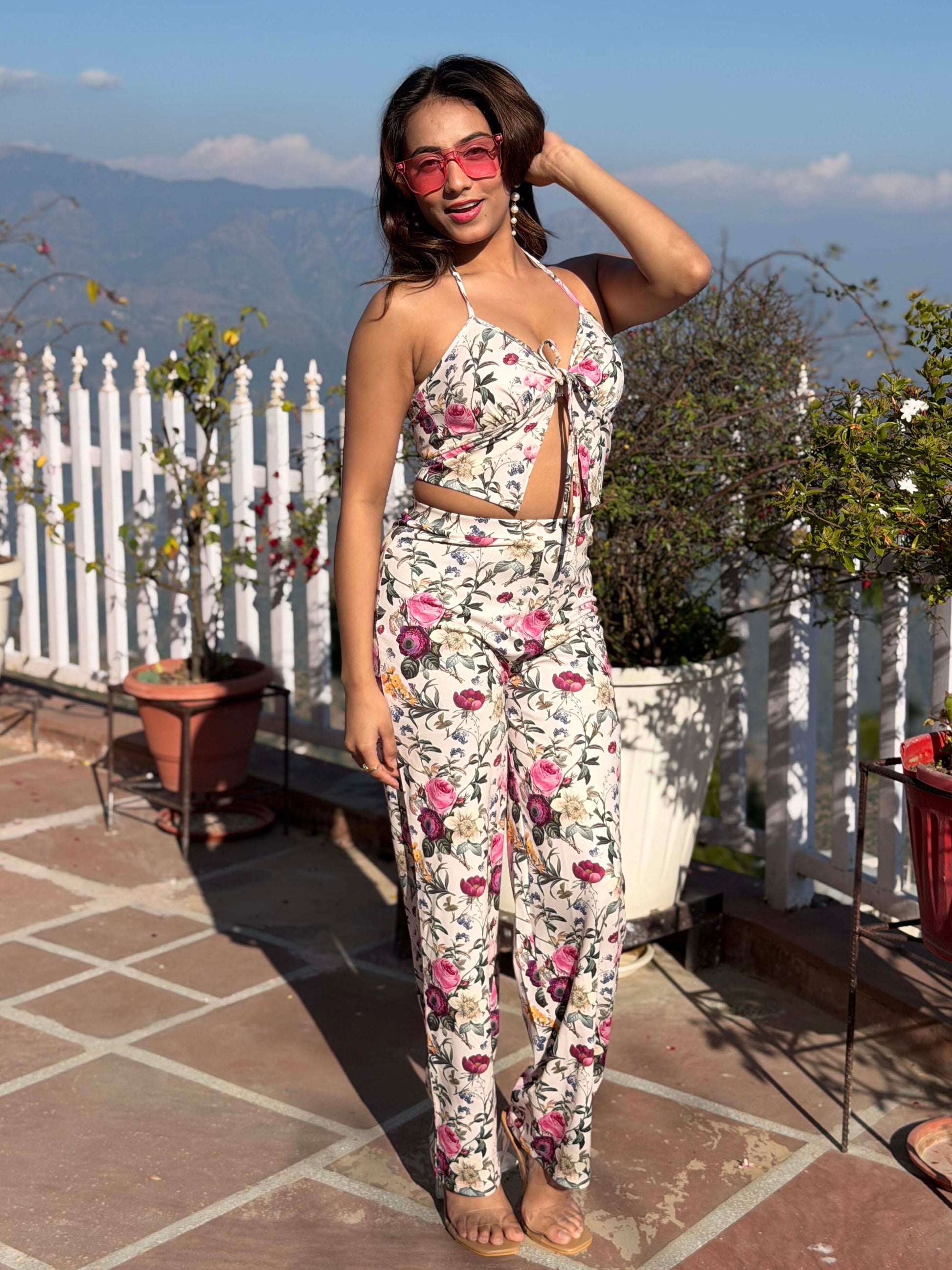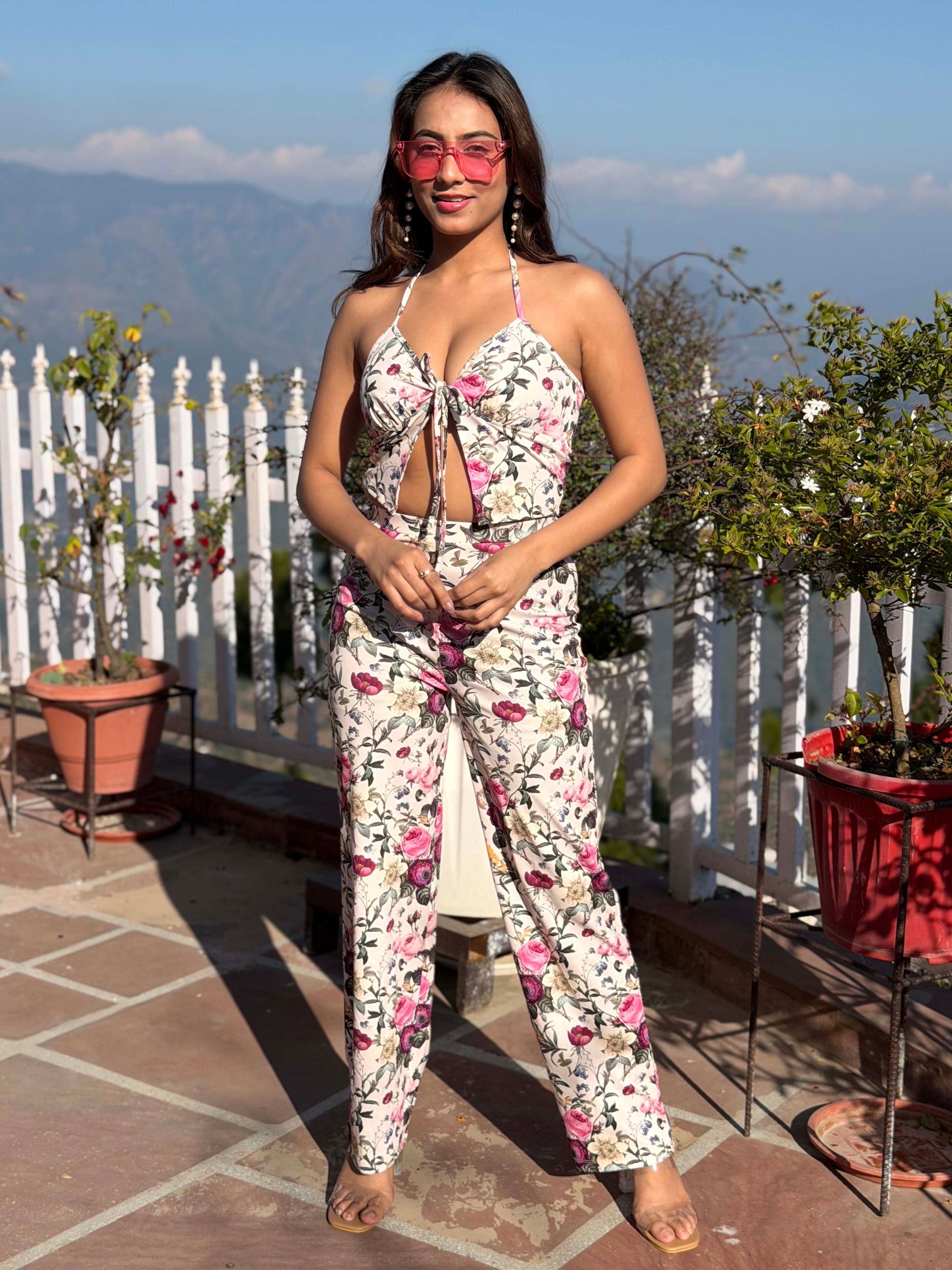 Elevate your wardrobe with our stunning floral print co-ord set, designed to bring a touch of elegance and vibrancy to any occasion. Crafted from lightweight, breathable fabric, this jumpsuit offers both comfort and style, featuring a flattering silhouette that accentuates your figure. The eye-catching floral pattern adds a playful yet sophisticated flair, making it perfect for summer outings, garden parties, or casual brunches. With its versatile design, you can easily dress it up with heels or keep it casual with sandals. Embrace effortless chic with this must-have addition to your collection.