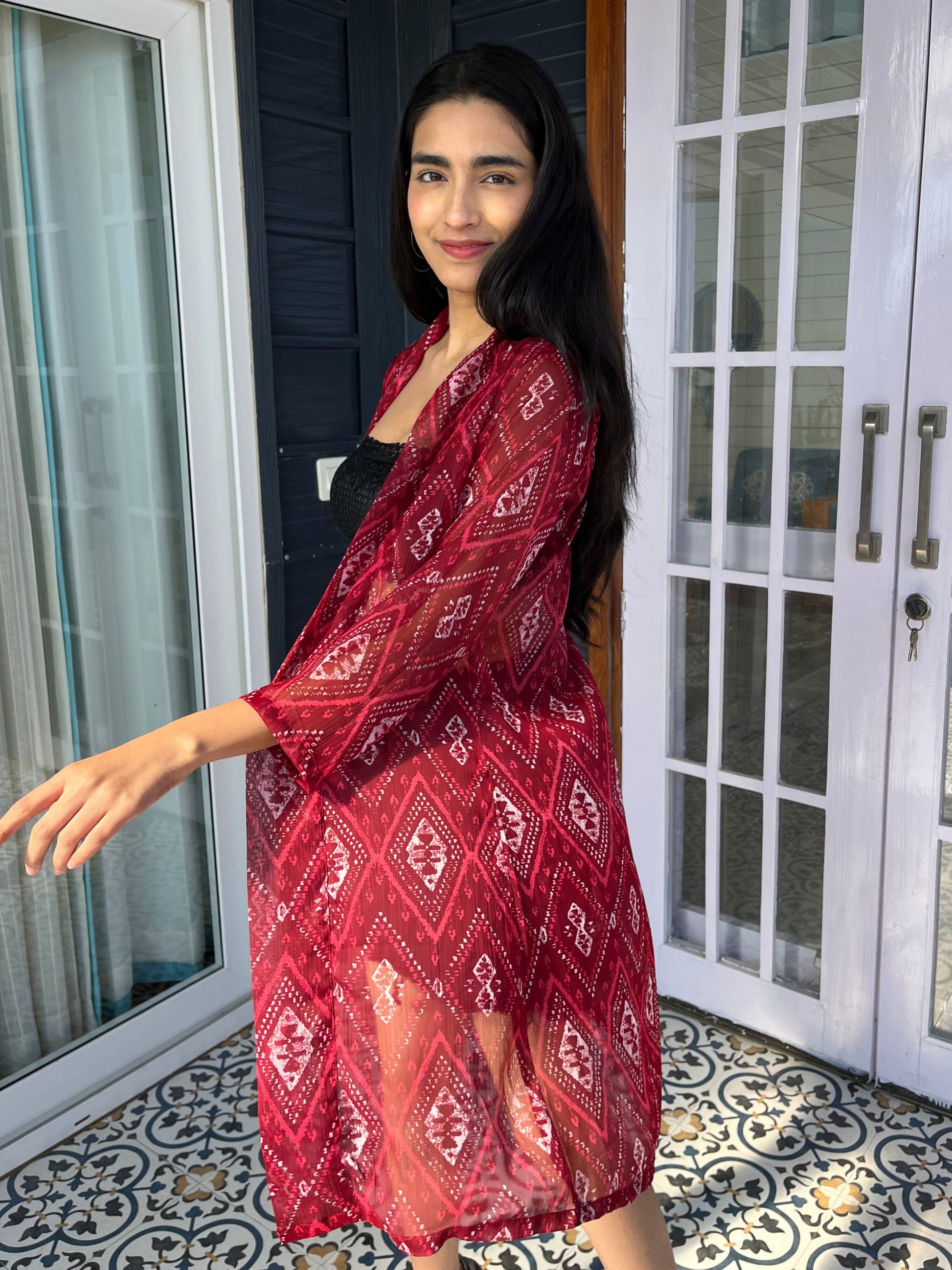 Elevate your wardrobe with this stunning printed shrug. The vibrant colors and intricate patterns create a captivating look, perfect for both casual outings and special occasions. Crafted from high-quality materials, this dress ensures comfort and durability, while its flattering silhouette enhances your natural shape. Pair it with your favorite accessories for a chic ensemble that turns heads wherever you go. Don't miss the chance to add this versatile piece to your collection.