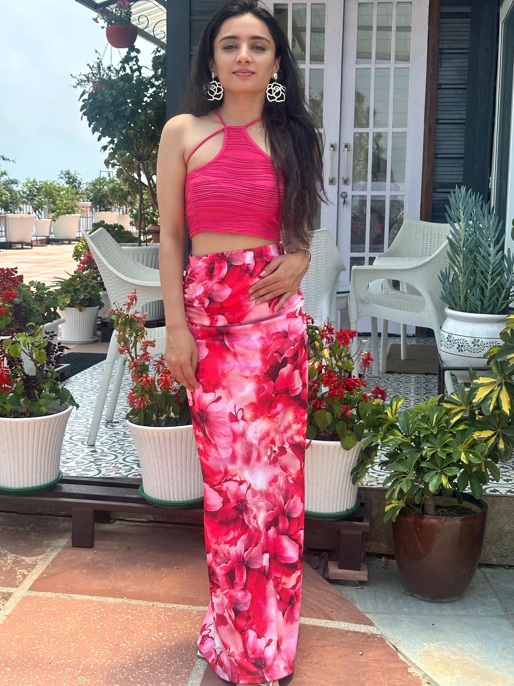 Elevate your wardrobe with this stunning pink floral skirt, perfect for any occasion. Crafted from high-quality fabric, it offers both comfort and style, making it an ideal choice for casual outings or special events. The vibrant floral pattern adds a touch of femininity, while the flattering silhouette enhances your figure. Pair it with a simple top and your favorite accessories for a chic, effortless look that will turn heads wherever you go. Don't miss the chance to make this versatile piece a staple in your collection.