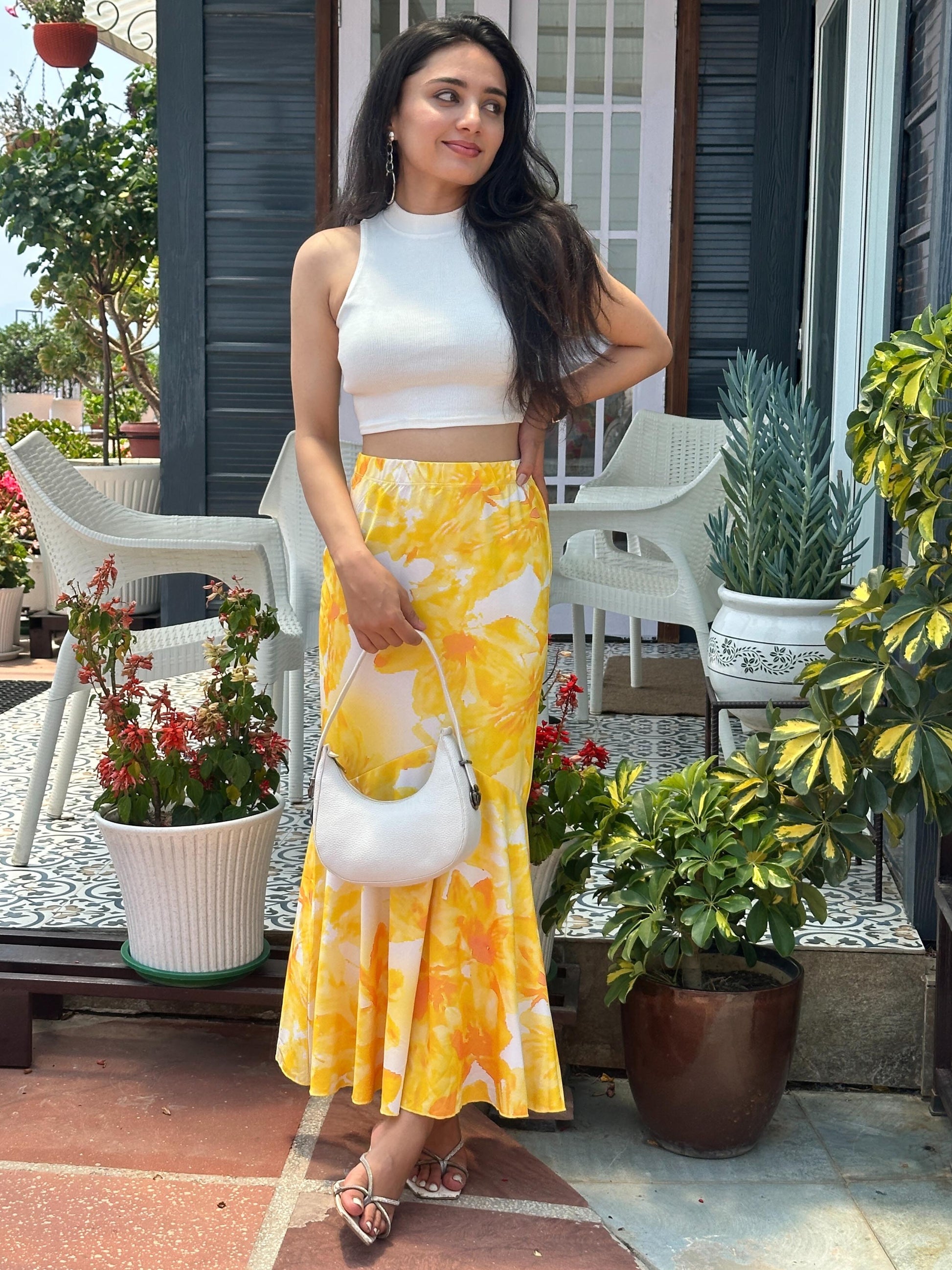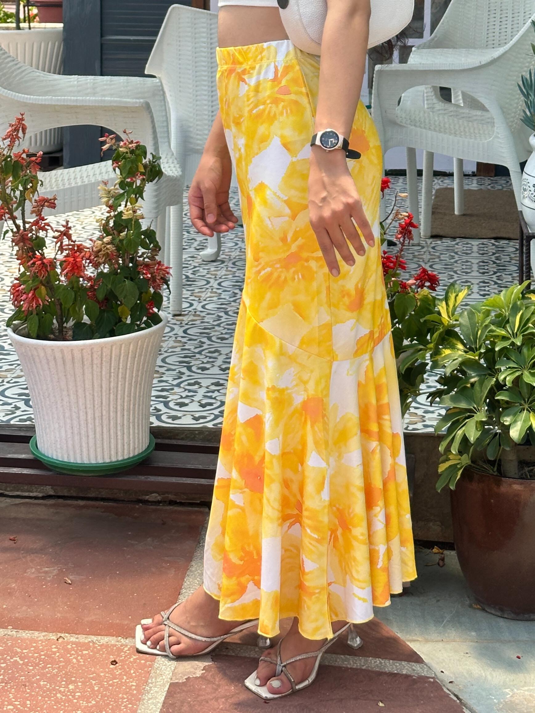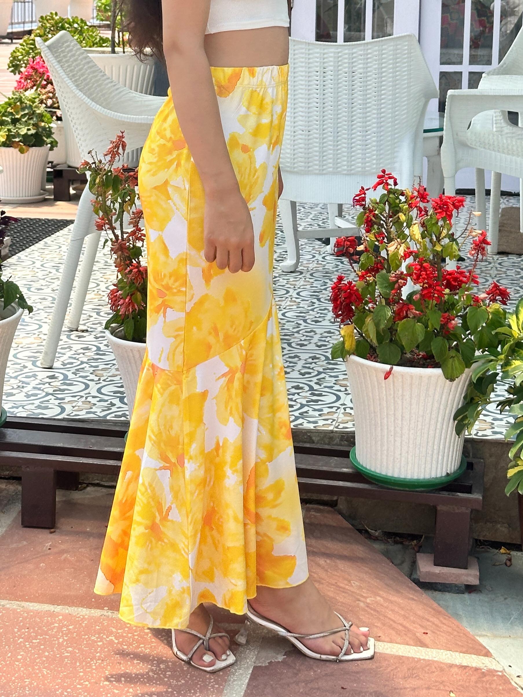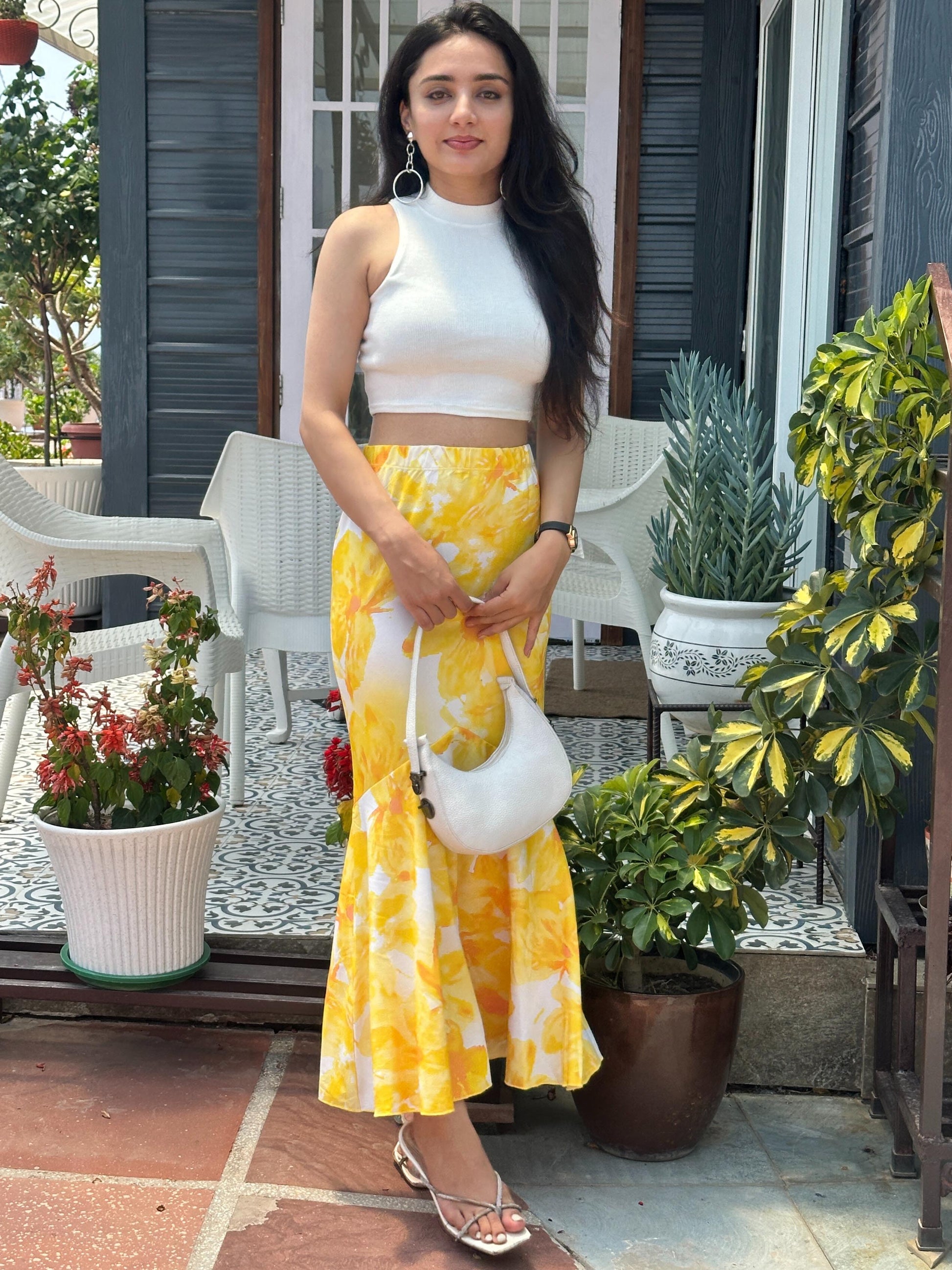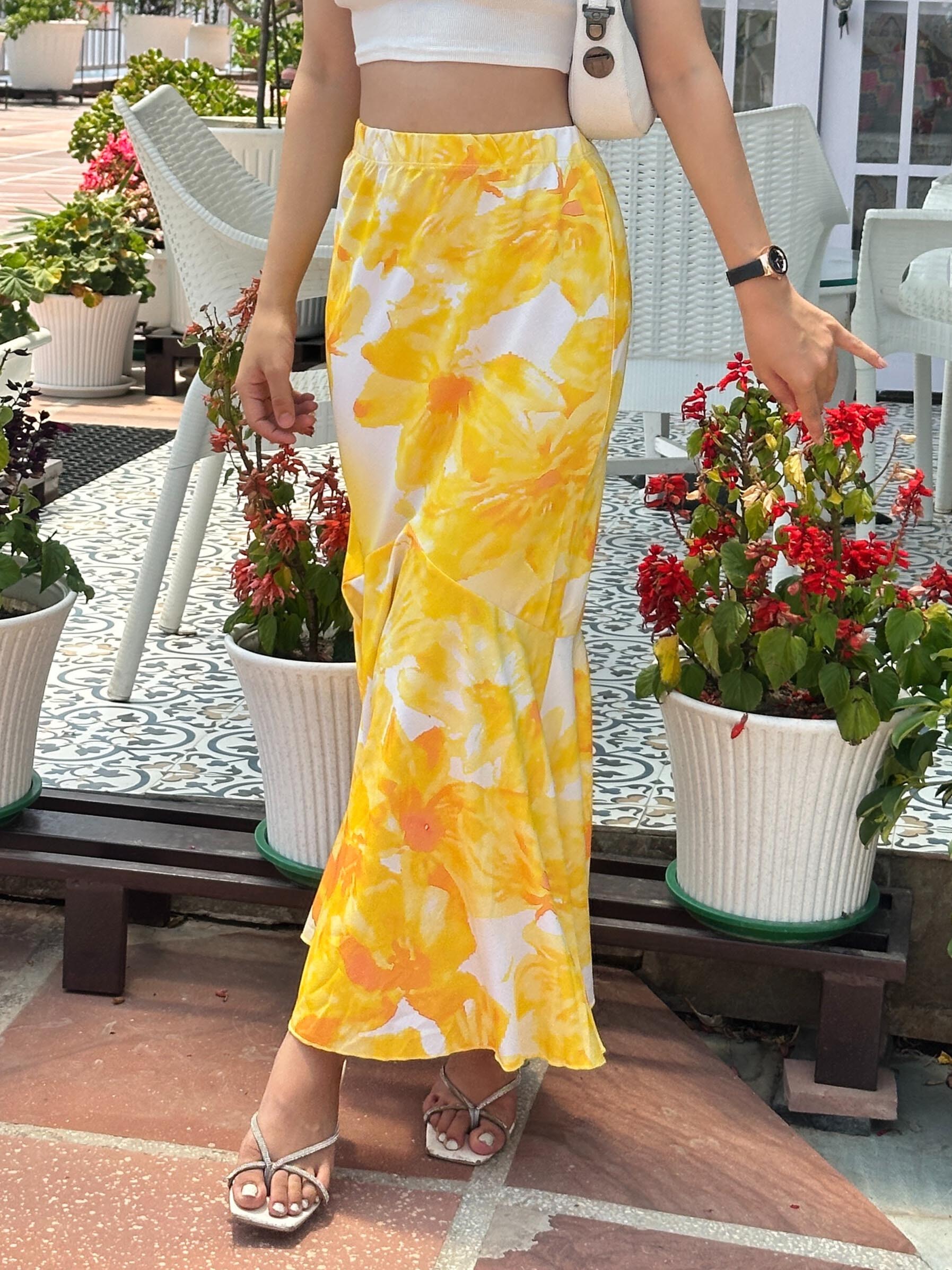 Elevate your wardrobe with our stunning yellow and white floral skirt, designed to bring a touch of sunshine to any outfit. Crafted from lightweight, breathable fabric, this skirt offers both comfort and style, making it perfect for warm days or casual outings. The vibrant floral pattern adds a playful charm, while the flattering silhouette enhances your figure. Pair it with a simple top and sandals for a chic, effortless look that will turn heads wherever you go. Don't miss out on this must-have piece for your spring and summer collection!