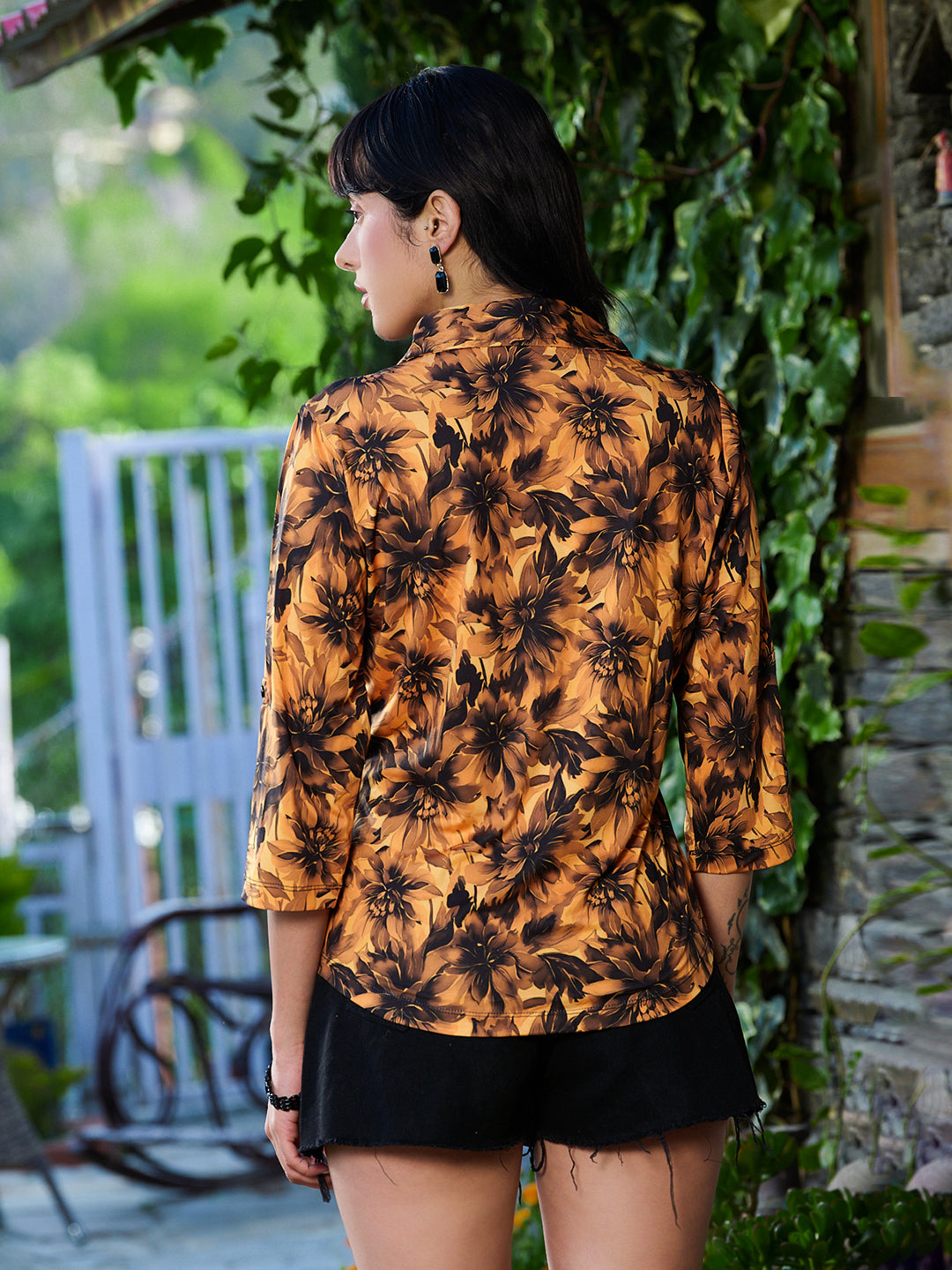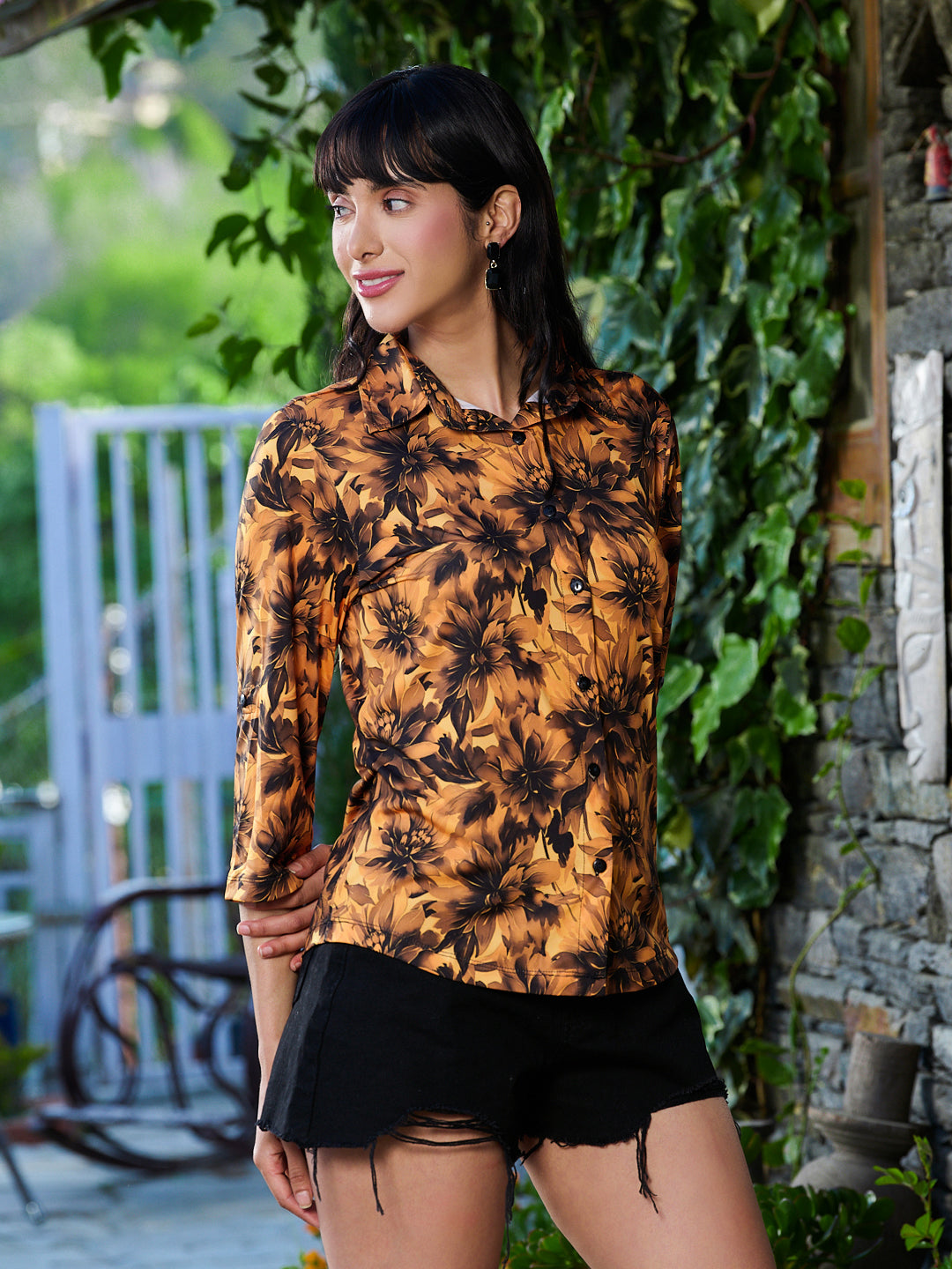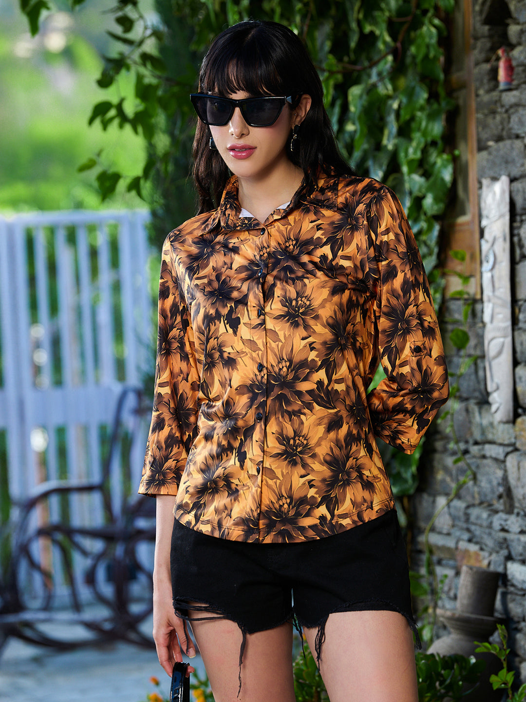 This elegant women's shirt features a stunning yellow sunflower pattern that effortlessly combines style and sophistication. Crafted from high-quality, breathable fabric, it ensures all-day comfort while making a bold fashion statement. The versatile design allows for easy pairing with jeans or skirts, making it perfect for both casual outings and more formal occasions. Elevate your wardrobe with this eye-catching piece that showcases your unique sense of style.