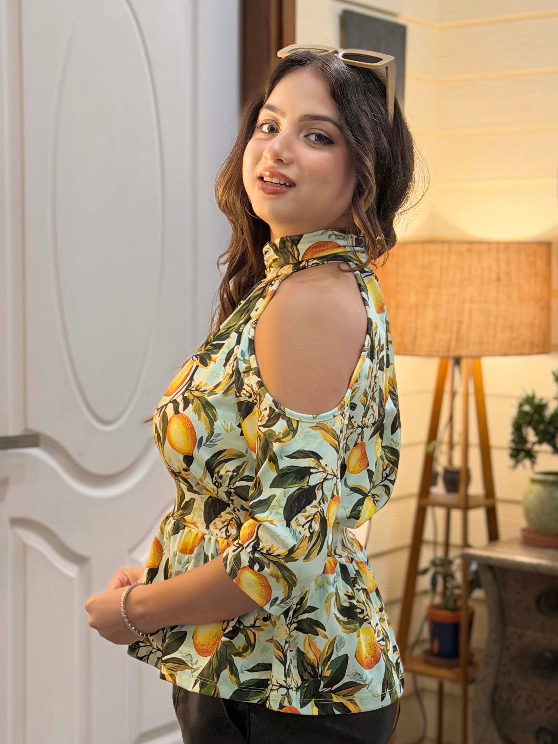 Elevate your wardrobe with this vibrant top featuring a playful orange print, perfect for adding a splash of color to any outfit. Crafted from lightweight, breathable fabric, this top ensures comfort while making a bold fashion statement. Ideal for casual outings or summer gatherings, it pairs effortlessly with jeans or shorts, making it a versatile addition to your collection. Embrace the sunny vibes and refresh your style with this eye-catching piece.